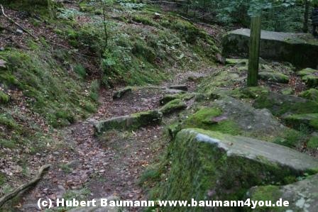 Den Rückweg nahmen wir über den direkten Weg (immer an der Telefonleitung lang) über einen idyllischen, teils felsigen Waldweg. (Wer von unten kommt: Durch das Tor und dann gleich links zwischen den Häusern durch und rechts den Berg hoch).