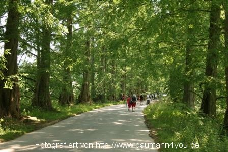Einer unserer Ausflüge führte uns von Meersburg mit der Fähre nach Konstanz und vom Fähranleger mit dem Fahrrad weiter zur Insel Mainau, auf der wir eine ausführliche Besichtungstour geplant hatten. Wer allerdings glaubt er könne von der Fähre direkt am Ufer entlang eben zur Insel gelangen, ist allerdings auf dem Holzweg. Der Radweg führt zunächst den Berg hinauf durch ein Wohngebiet und dann wieder leicht Bergab durch den Wald, wo wir nach ca. 30 Minuten am Eingang unsere Fahrräder anketteten.