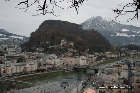 Ein gemütlicher Vormittagsausflug führte uns auf den Mönchsberg. Mit dem Lift hoch zum „Museum der Moderne“ und von dort in einem nahezu ebenen Spazierweg über den Bergrücken zur Burg Hohensalzburg. Kurz vor der Burg bogen wir nach links ab wieder zur Stadt hinunter.