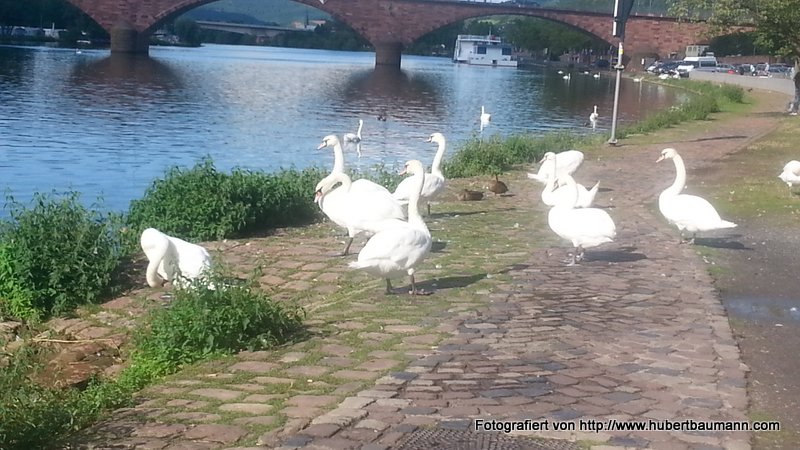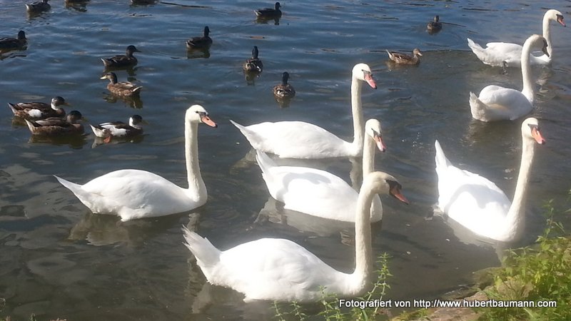 Wenn man in Miltenberg am Main spazieren geht, ist man nicht allein. Überall wimmelt es von Schwänen. Insgesamt seien wohl über 60 der weißen Prachtexemplare gezählt worden, meinte ein Passant, der mich bei meiner Fotosession beobachtete.