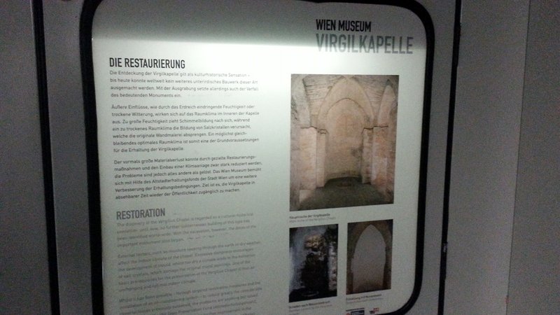 Diese unterirdische Kapelle unter dem Stephansdom wurde beim Bau der U1 in den 70-er Jahren entdeckt. Zu bestaunen ist die Virgilkapelle, indem man gegenüber dem Stephansdom in den Untergrund fährt und dann gleich linkerhand durch ein großes Sichtfenster.
