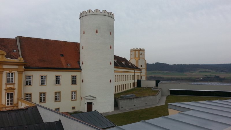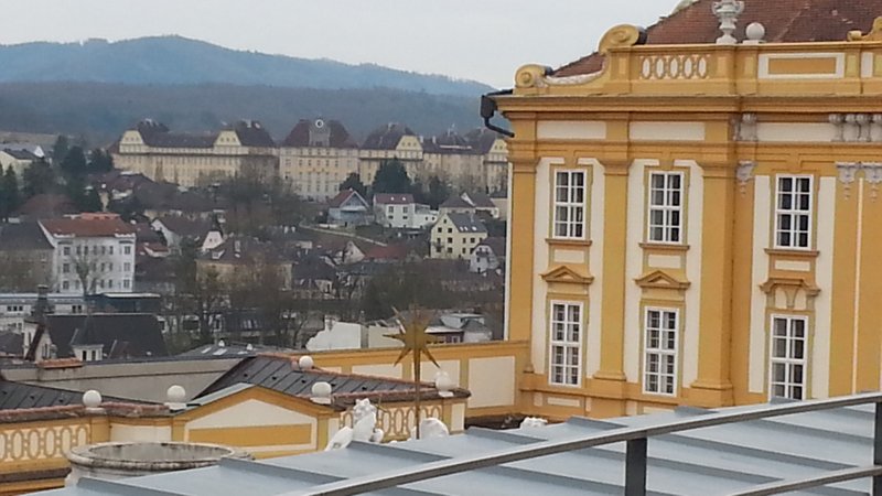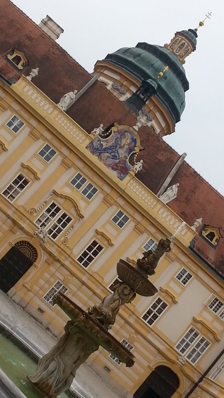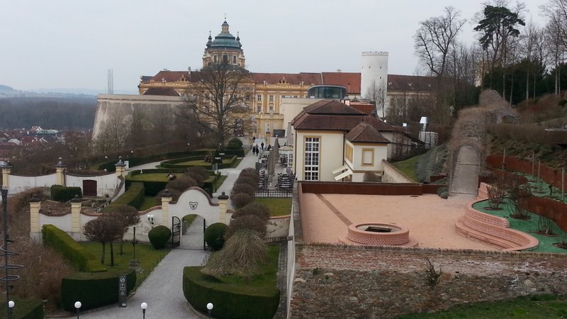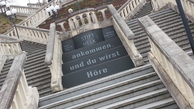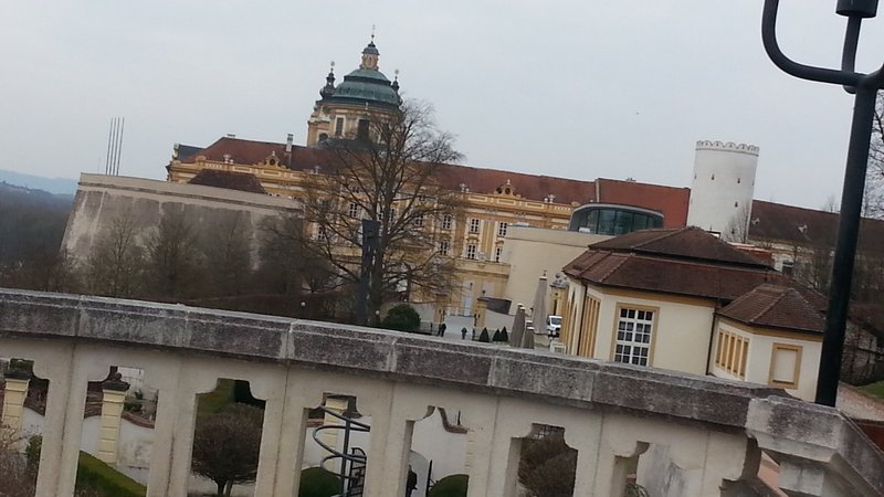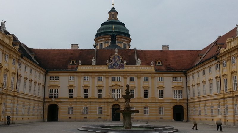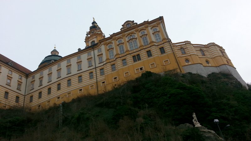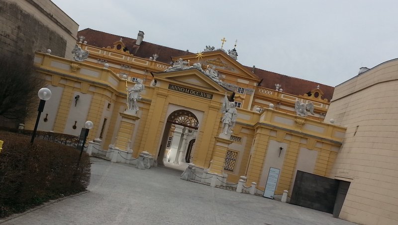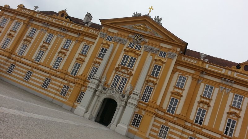 Fährt man die Westautobahn von Wien in Richtung Linz, so erhebt sich kurz nach St. Pölten (zwischen Loosdorf und Ybbs) rechterhand ein imposanter gelblicher Prachtbau, das Benediktinier-Stift Melk. Für Eilige bleibt der Blick im Vorbeifahren eine Weile erhalten. Ich habe mir diese Woche etwas Zeit genommen und mir die Anlage mal etwas näher angeschaut.