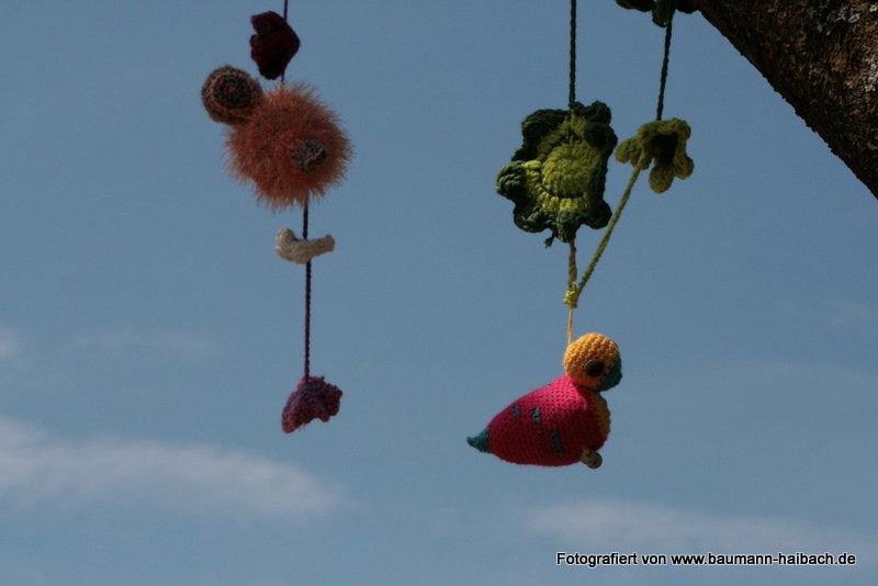 Der nächste Winter kommt bestimmt. Und so beginnt so mancher schon frühzeitig mit dem Stricken. Strickkunst und Assecoires rund um den Baum – entdeckt auf der Bayerischen Landesgartenschau 2015 in Alzenau.