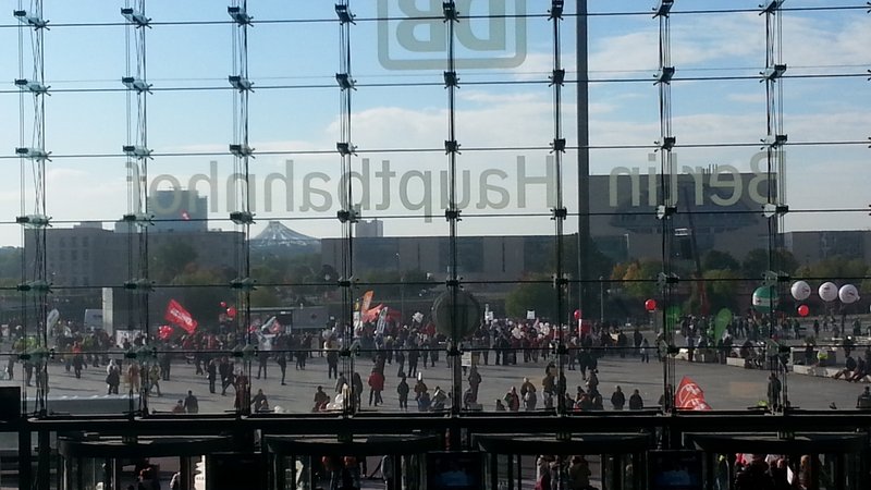 An den Bildern, die die Hauptorganisatoren wie „Mehr Demokratie e.V.“ und „Campact“ auf ihren Facebook-Seiten und in ihren Blogs veröffentlicht haben, kann man sich sehr gut vorstellen, wie das gestern im Regierungsviertel in Berlin aussah. Eine „festgelegte Demoroute“ gab es rein theoretisch. Doch defacto waren überall Menschen – viele Menschen, die sich aus allen Teilen Deutschlands auf den Weg nach Berlin machten. Ich sah Schilder aus Karlstadt, Rosenheim, Freiburg …. Ich hörte Dialekte aus allen Teilen der Republik und ich sah Menschen Menschen Menschen. Insgesamt 250.000 schätzte der Veranstalter, die Polizei kam auf 170.000. Große, kleine, alte, junge, Krawattenträger, Pulloverträger, Rollstuhlfahrer und und und. ….