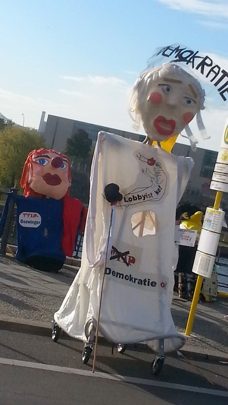 Es war voll in Berlin und im Regierungsviertel und die Teilnehmerzahl zeigt, wievielen Menschen dieses Thema wirklich am dem Herzen liegt. Ob wir mit unserem Einsatz die Politiker, die „dem deutsche Volke“ dienen, wie es in großen Buchstaben auf dem Reichstagsgebäude steht, überzeugen können? Ich hoffe schon. In ganz Europa haben über 3,263 Millionen Bürger in einer selbstorganisierten Bürgerinitiative Unterschriften gegen die geplanten Freihandelsabkommen TTIP und CETA gesammelt. 30.000 waren im Juni anlässlich des G7-Treffens in München, 250.000 waren am Samstag, 10.10., in Berlin. Es werden immer mehr …