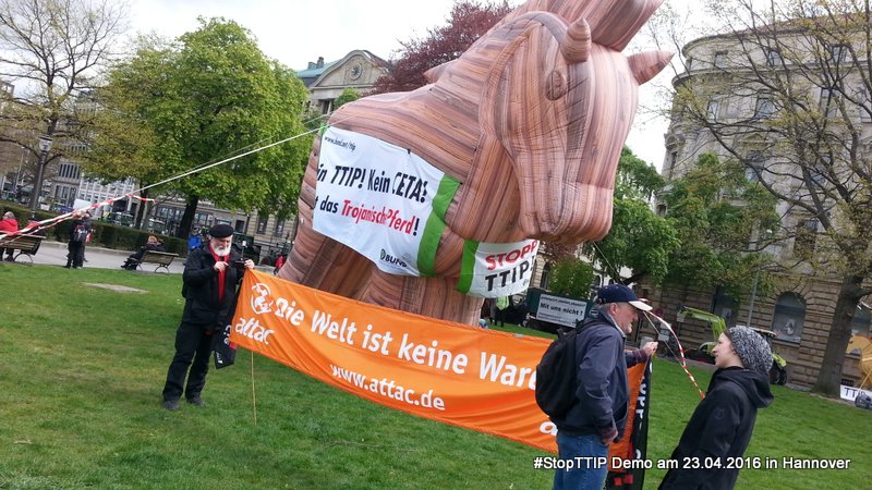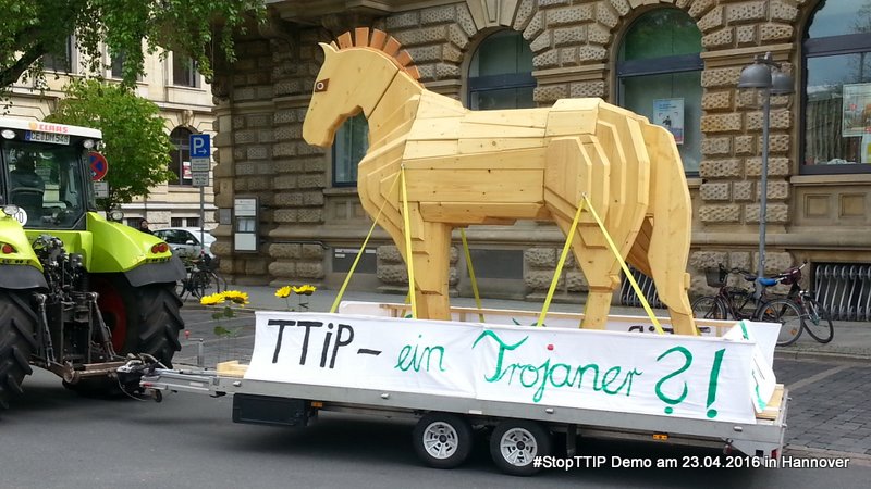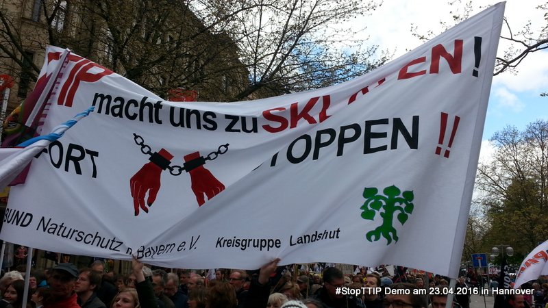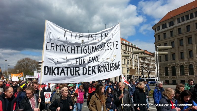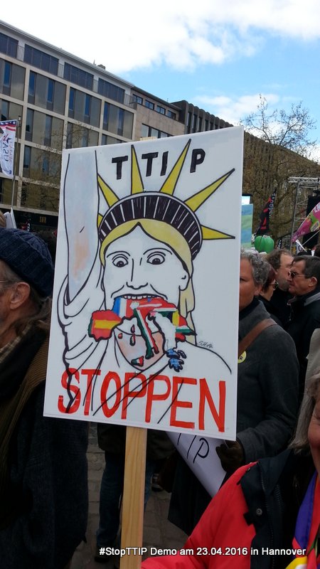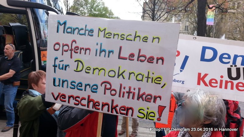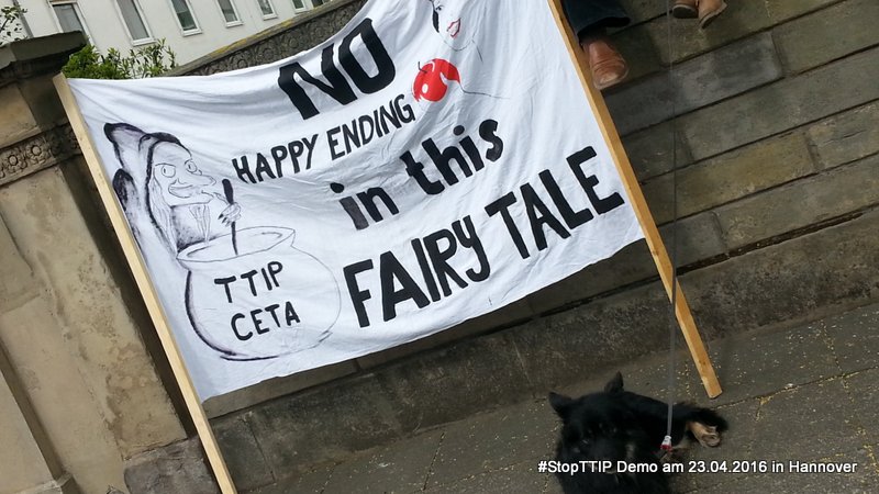 Mit diesen Worten der ÖDP kann man die möglichen Auswirkungen der geplanten Freihandelsabkommen TTIP, CETA und TiSA kurz und knapp zusammenfassen. Dementsprechend wurden diese drei Errungenschaften, die sich die Bürger dieses Landes in den letzten Jahrzehnten mühsam erarbeitet haben, in Särgen zu Grabe getragen.