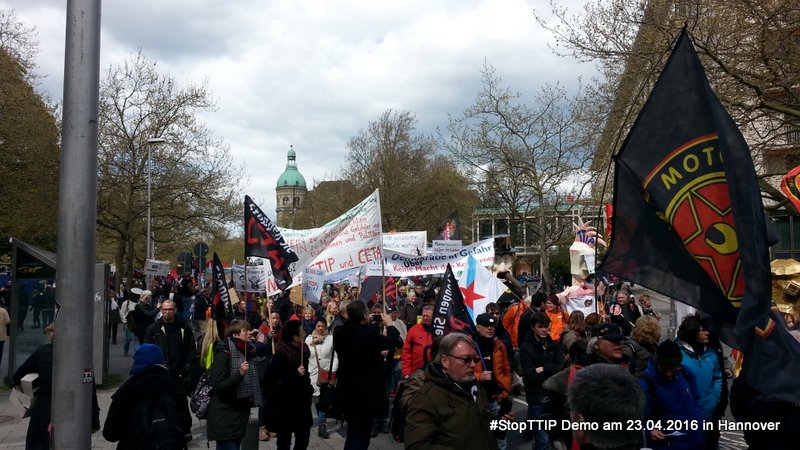 Doch auch die „Gegenseite“ meldete sich auf der Demoroute durch die Hannoveraner Innenstadt auf einem Großtransparent zu Wort. Allerdings zeigten sich die Demoteilnehmer davon wenig beeindruckt. Wir waren mit rund 90.000 Teilnehmern eindeutig in der Überzahl.