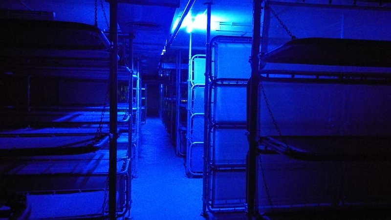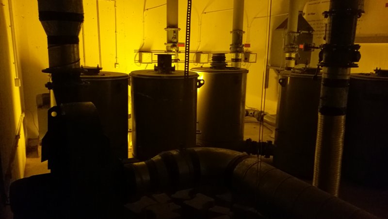 Der freie Raum im Bild wird im Ernstfall ebenfalls mit Liegen belegt. Und ist der Bunker mit den geplanten 3.592 Menschen gefüllt, ist er dann auch voll – und das im wahrsten Sinne des Wortes! Um möglichst vielen Menschen Platz zu bieten, wurde selbst bei wichtigen Dingen gespart. So gibt es für die „Bewohner“ nur rund 20 Toiletten und 2 kleine Küchen, um sich dort mit Konserven zu versorgen. Weitere Eindrücke auch auf der Museumsseite „The Story of Berlin“.