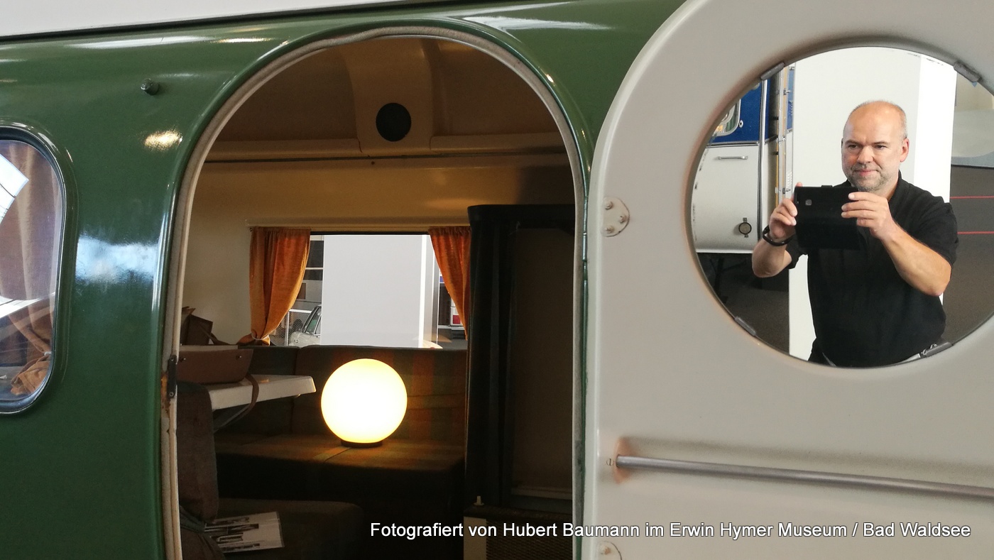Als eine Reise um die Welt und zugleich eine Reise in die Vergangenheit – in die Zeit als die Wohnmobile noch aus Holz waren, die Tapeten noch große bunte Muster trugen – präsentierte sich unser Besuch im Erwin Hymer-Museum in Bad Waldsee.