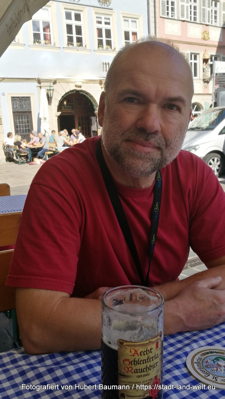 Der Wirt erklärte uns auch die Herkunft des Begriffes „Schlenkerla“. Es gäbe 2 Theorien: Die eine besagt, dass der Bierbrauer, der dem Schlenkerla den Namen gab, einen Gehfehler hatte – das wäre dann das Pentdant zu unserem Aschaffenburger „Schlappeseppel“), die 2. Theorie besage, dass Gäste, die zu viel von dem Schlenkerla getrunken hätten, dann nach Hause schlenkern würden. ….. wobei der Wirt eher die 1. Theorie für wahrscheinlich hielt.