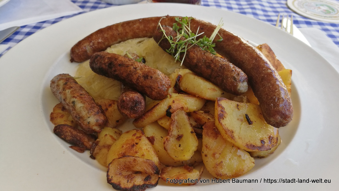 Natürlich durfte auch eine ordentliche Brotzeit mit original fränischen Bratwürsten mit Kraut und einem original Bamberger Schlenkerla Rauchbier nicht fehlen. Der erste Schluck ist, wie wenn man in ein Stück geräucherten Schinken beißt. Aber man kaut nicht, sondern schluckt einfach runter.