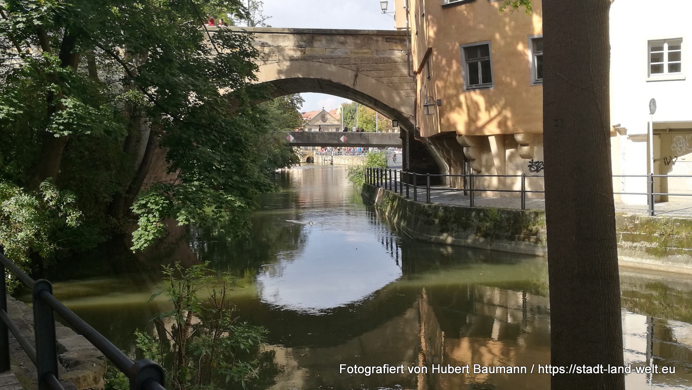 Von Bamberg Bug aus geht es dann an der Regnitz entlang mit dem Fahrrad in ca. 15 Minuten in die Innenstadt von Bamberg.