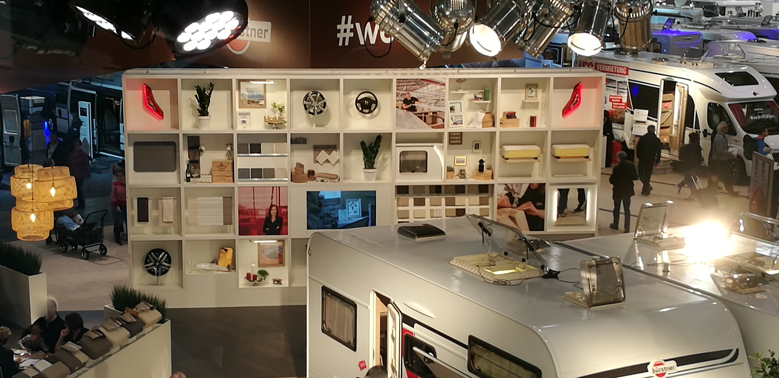 Dass uns am Samstag nicht gerade ein ruhiger Messebesucher erwarten sollte, verriet uns ein Posting am Freitag in einem der zahlreichen Reisemobil-Gruppen auf Facebook. Der WoMo-Stellplatz war schon gegen Nachmittag voll und es kamen bis in die Abendstunden immer mehr, war dort in den Kommentaren zu lesen. Insgesamt 87.000 Besucher zählte die Messe rein am ersten Messewochenende. Und so war das Foyer bereits 30 Minuten vor der offiziellen Eröffnung am Samstag bereits gut gefüllt.