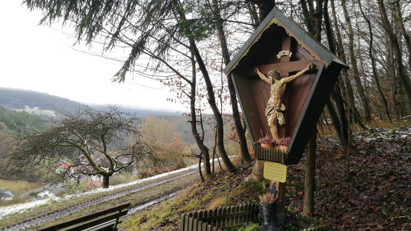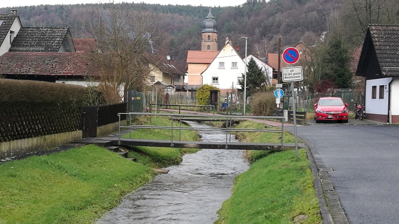 Nach einem kurzen Verweilen geht es den Kreuzweg abwärts folgend wieder hinunter ins Tal. Den Weg über die Kernsmühle und den Höllenhammer sparten wir uns heute. Wir überquerten die Hauptstraße und folgten der Elsava aufwärts wieder zum Ausgangspunkt.