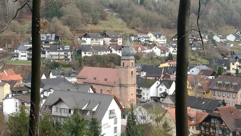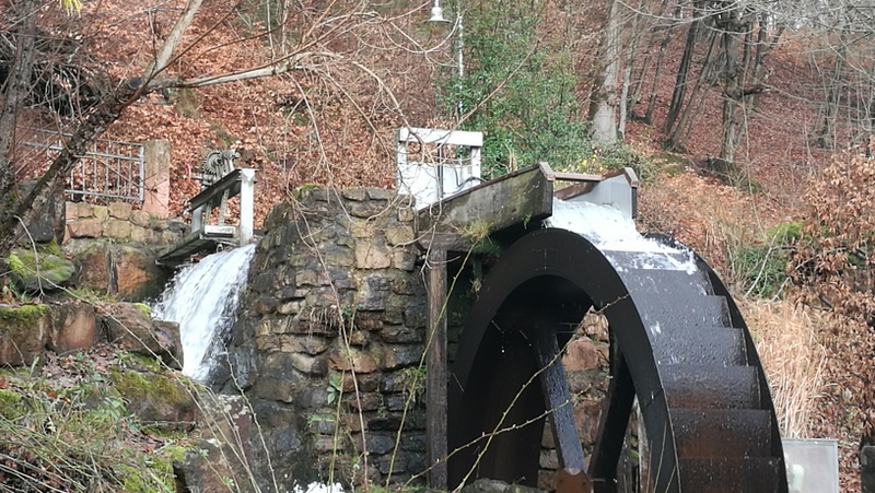 Von dort gelangt man am Hotel Lamm vorbei durch den Hof zum Mühlrad einer ehemaligen Mühle und von dort aus steil einen Pfad bergauf, der nach wenigen Hundert Metern auf einen Waldweg mündet, der im weiteren Verlauf (immer der Markierung folgend) zur Kapelle „Herrin der Berge“ führt.
