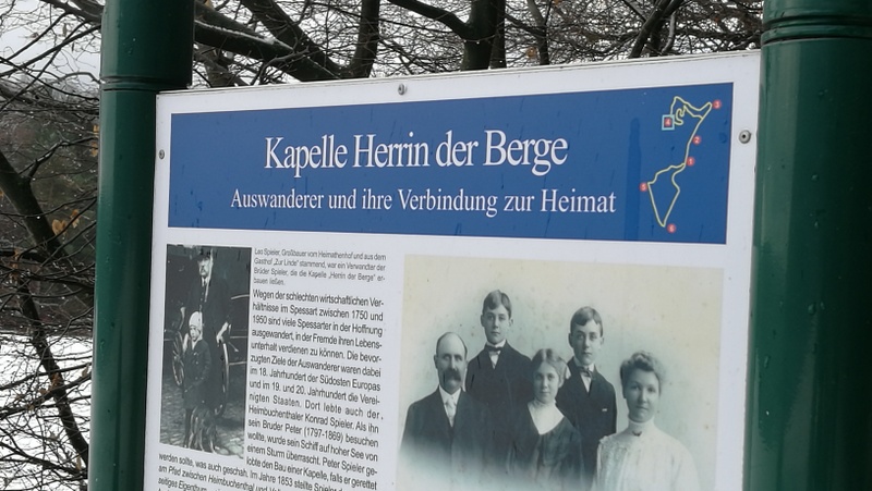 Animiniert von einem kleinen Büchlein „Wandern auf den Europäischen Kulturwegen„, das uns vergangene Woche bei der CMT Urlaubsmesse in Stuttgart in die Hände fiel, wagten wir heute unsere erste Tour. Unser Ziel war die „Herrin der Berge“ in Heimbuchenthal. Eine kleine Kapelle auf einem Hügel zwischen Heimbuchenthal und Volkersbrunn, entstanden aus einem Gelübde eines Heimbuchenthaler Bürgers, der bei einer Amerika-Reise in Seenot geriet (ausführliche Geschichte hier), und die heute in den europäischen Kulturweg Heimbuchenthal eingebettet ist.