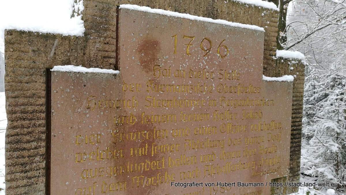 Unser Weg führte uns auch heute wieder auf einen der Europäischen Kulturwege, und zwar nach Heigenbrücken. Wir starteten wie in der Routenbeschreibung hier http://www.spessartprojekt.de/kulturwege/heigenbruecken/ oder auch hier http://heigenbruecken.de/europaeischer-kulturweg-heigenbrueckener-formation beschrieben, in der Ortsmitte in Heigenbrücken, einige Meter entlang des Lohrbaches und durch eine Straßenunterführung geht es auch schon bald steil bergauf in Richtung Pollasch.