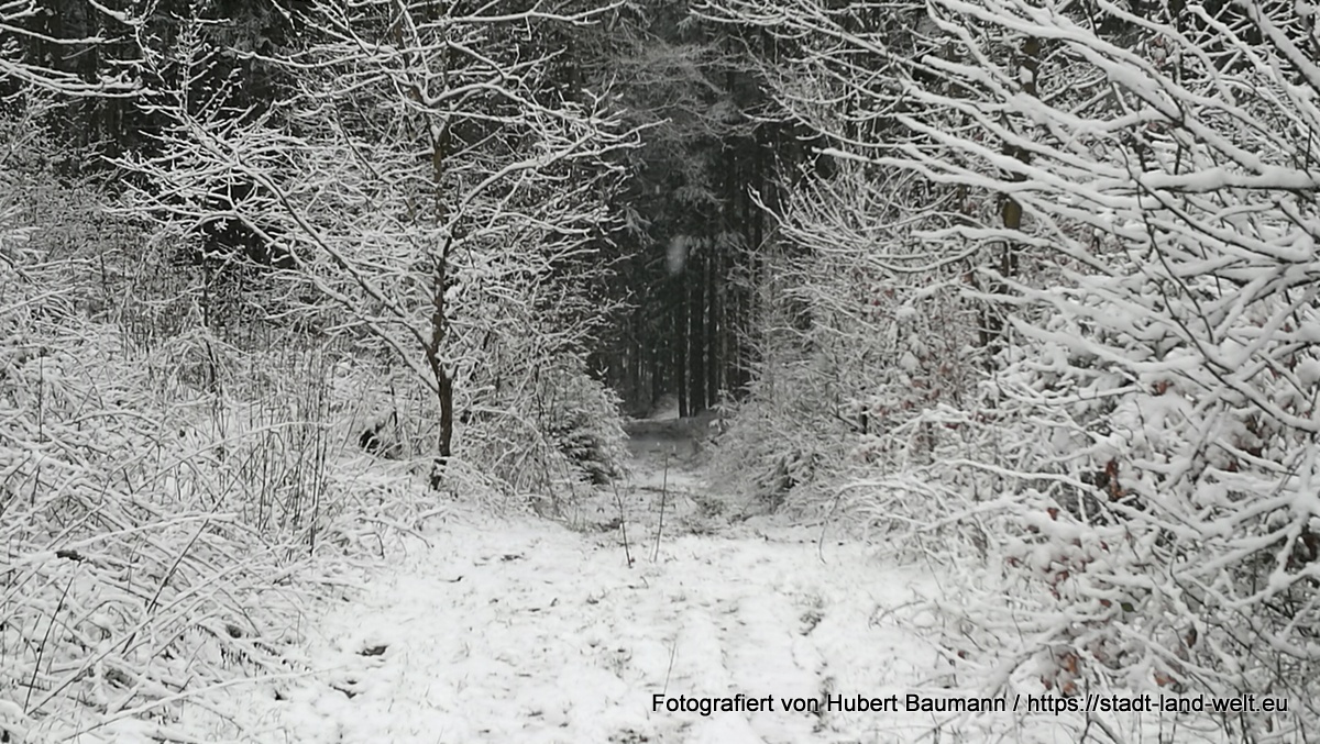 Hatten wir uns nicht eigentlich schon auf Frühlich eingestellt? Erst vor wenigen Tagen entstand diese Aufnahme mit den ersten Krokussen in unserem Garten. Heute hatte uns der Winter wieder voll im Griff. Und so wurde aus unserem Sonntagsausflug eine echte Winterwanderung – ohne Sonne, aber mit ordentlich Schneefall. Viel lieber hätte ich euch Bilder bei herrlichem Sonnenschein und blauem Himmel präsentiert.