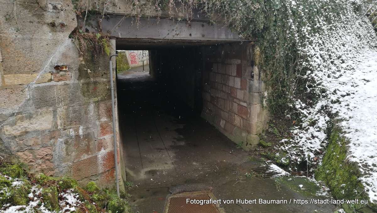 Vorbei an der ehemaligen Einfahrt zum Schwarzkopftunnel, die mit einem großen Metalltor „verrammelt“ wurde, und entlang des eher trostlos wirkenden alten Bahnhofs gelangten wir nach einigen Hundert Metern wieder zum Ausgangspunkt.
