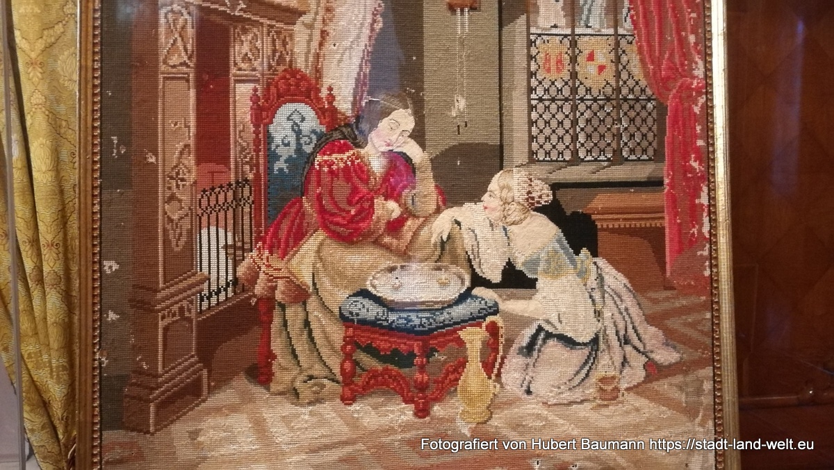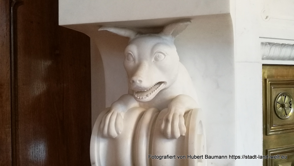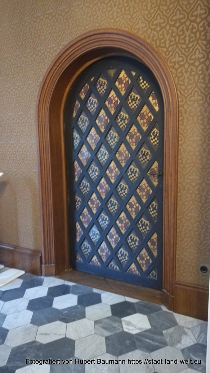Es gab Informationen über die Historie des Schlosses, über die Nutzung während und nach dem Krieg sowie über einzelne Räume, asymetrische Kerzenleuchter, über Ritterrüstungen, die eigentlich eine ganz andere Funktion haben, einen Geheimgang zum Speisesaal der ehemaligen Schlossbesitzer sowie einige weitere Geschichten „off topics“.