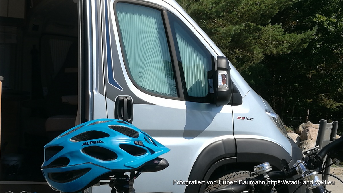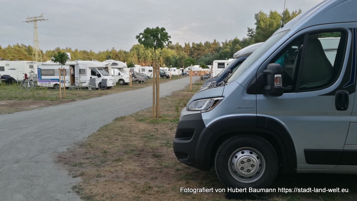 Im weiteren Tagesverlauf war uns wichtig, zunächst für die Nacht einen gesicherten Stellplatz zu finden. Aufgrund der Ferienzeit in den meisten Bundesländern wurden wird bereits vorgewarnt, dass es diesbezüglich eng werden könnte, wenn man zu spät kommt. Wir hatten uns den Stellplatz „Wohnmobil Oase“ in Prora ausgesucht, der uns aufgrund seiner Lage für unsere weiteren Erkundungen für geeignet erschien. Den Stellplatz – durch einen Wall von der Straße getrennt – erreichten wir gegen 14:00 Uhr.