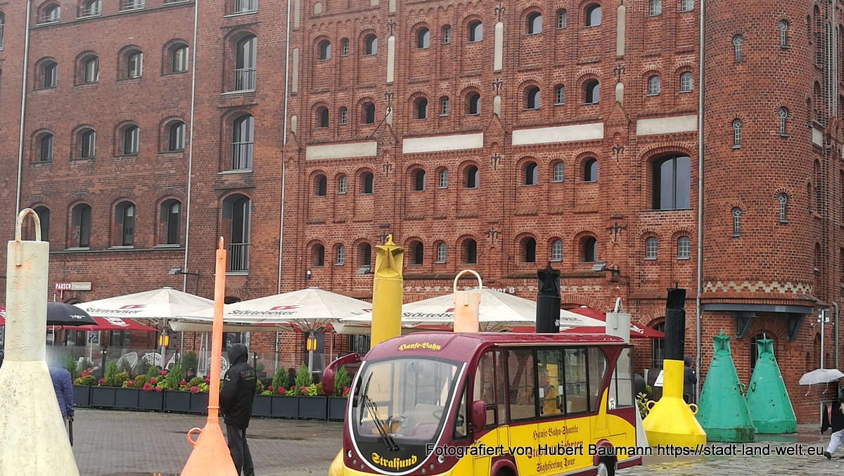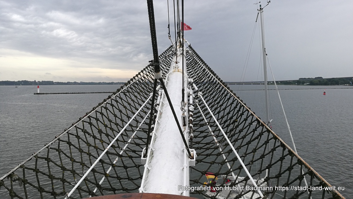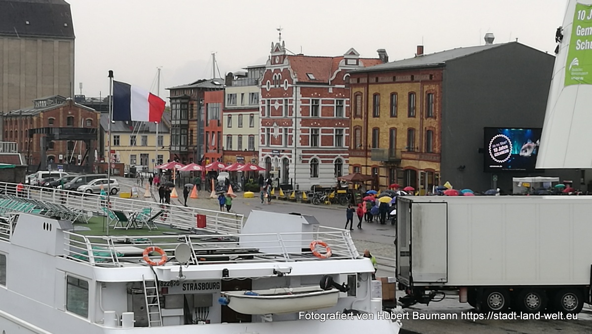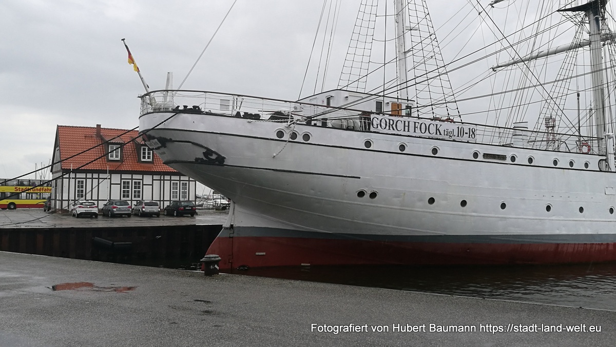 Ebenfalls regnerisch verlief auch der folgende Tag in Stralsund. Unser ursprünglich geplantes Regenwetter-Alternativprogramm – der Besuch des Ozeaneums – wurde kurzfristig durch den Besuch des in der Nähe vor Anker liegenden Segelschulschiffes „Gorch Fock“, sowie einen anschließenden Stadtrundgang mit Mittagessen ersetzt. Zu viele hatten die gleiche Idee wie wir, sodass wir uns die Warteschlange vor dem Eingang definitiv nicht antun wollten.
