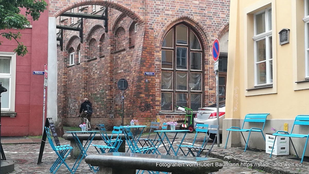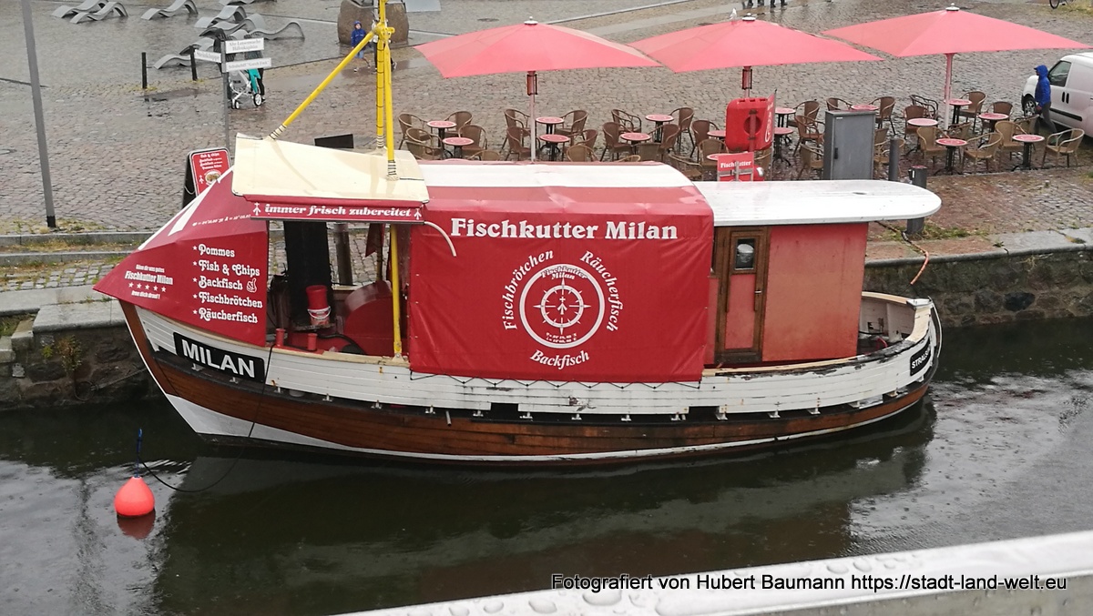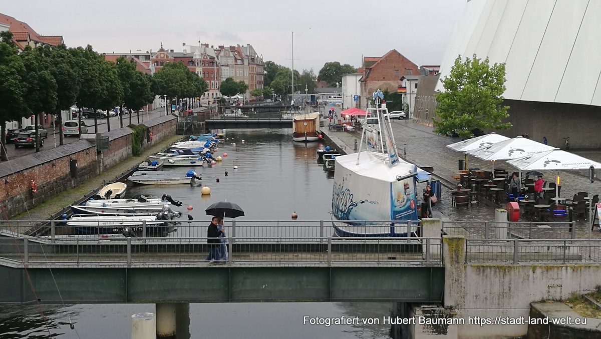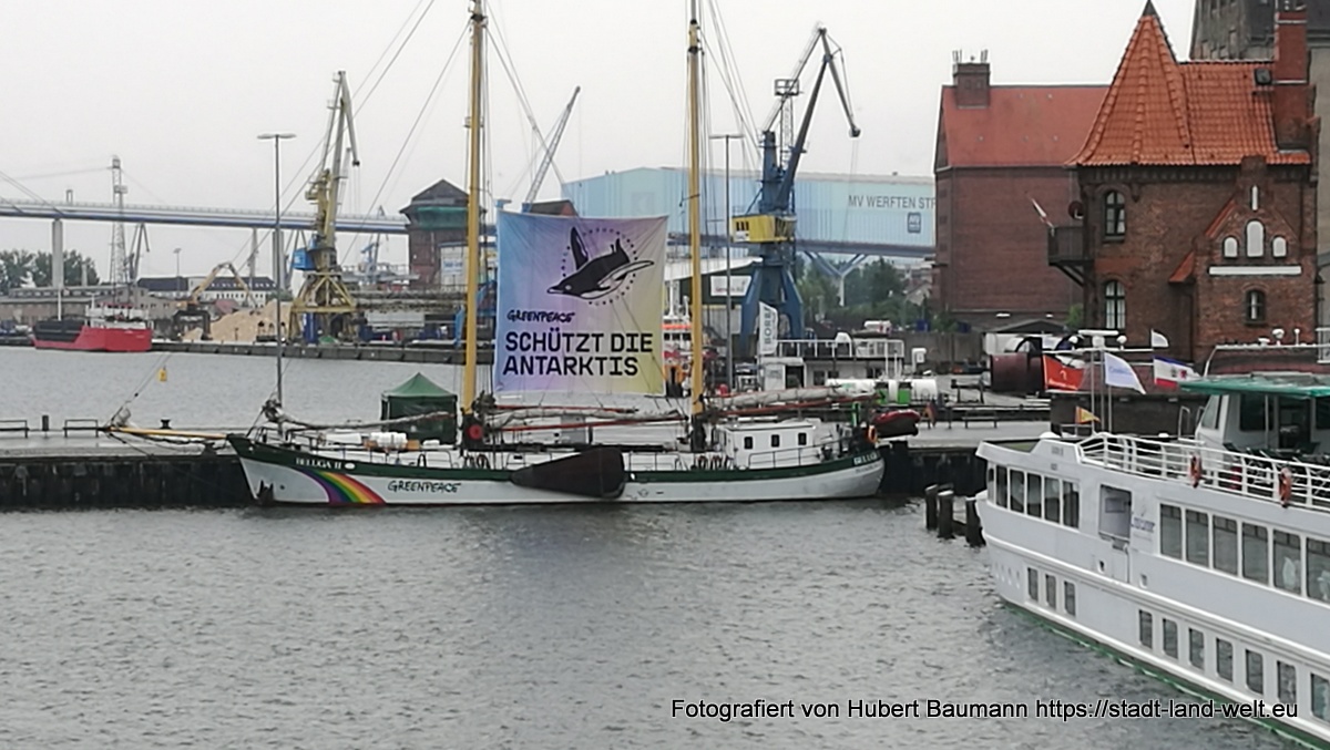 Ebenfalls regnerisch verlief auch der folgende Tag in Stralsund. Unser ursprünglich geplantes Regenwetter-Alternativprogramm – der Besuch des Ozeaneums – wurde kurzfristig durch den Besuch des in der Nähe vor Anker liegenden Segelschulschiffes „Gorch Fock“, sowie einen anschließenden Stadtrundgang mit Mittagessen ersetzt. Zu viele hatten die gleiche Idee wie wir, sodass wir uns die Warteschlange vor dem Eingang definitiv nicht antun wollten.