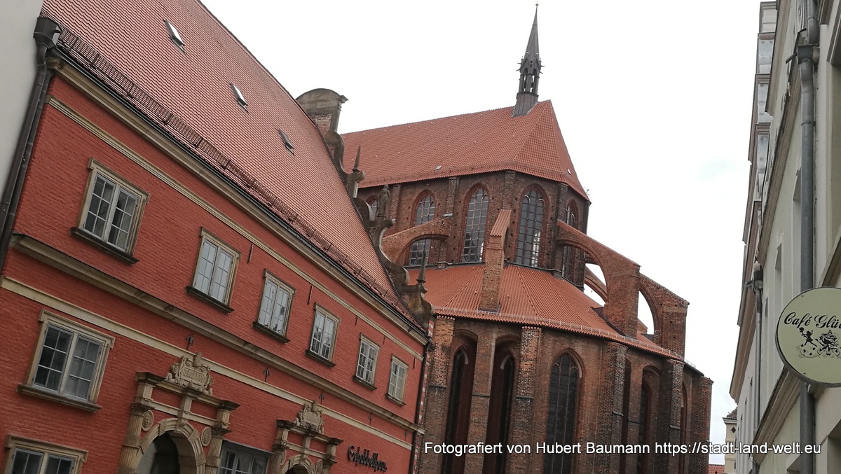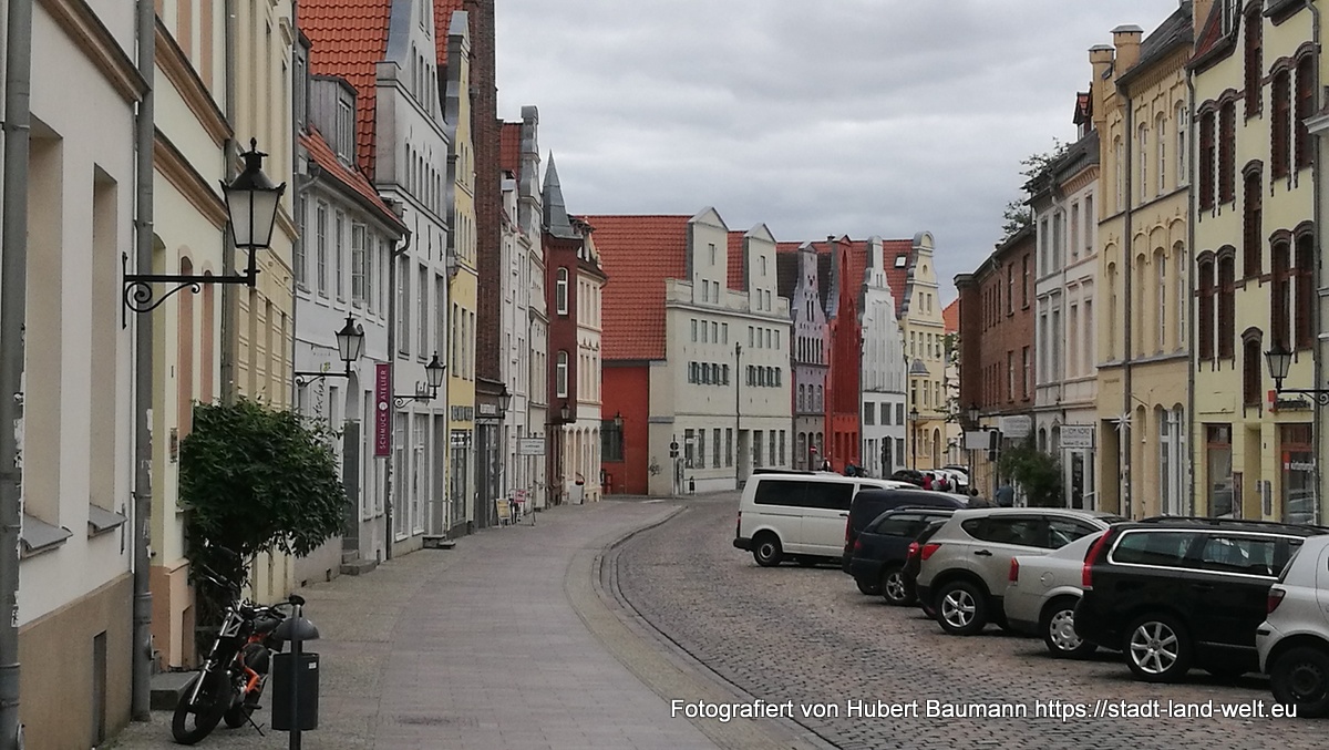 Am Morgen des 5. Tages verließen wir die Insel Rügen. Vorbei an Rostock ging es in die ca. 150 km südwest gelegenere Hansestadt Wismar. Wir hatten an diesem Morgen am Stellplatz auf Rügen nur einen Kaffee getrunken und haben unser ausführliches Frühstück dann unterwegs in einem Park auf einer Bank zu uns genommen. Das Wetter wurde von Tag zu Tag besser. Und so stieg auch unsere Laune weiter.