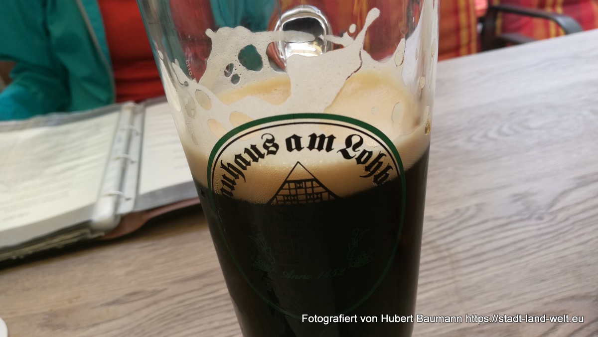 … sowie zum Abschluss des Tages eine Einkehr im örtlichen Brauhaus am Lohberg. Die Leute, zu denen wir uns an den Tisch setzten, empfahlen uns, unbedingt die Wismarer Wumme zu probieren. Und das taten wir dann auch. Aufgrund des zwischenzeitlich warmen Sommerwetters wechselten wir nach unsere Probe-Wumme allerdings zu einer leichteren helleren Biersorte. :-)