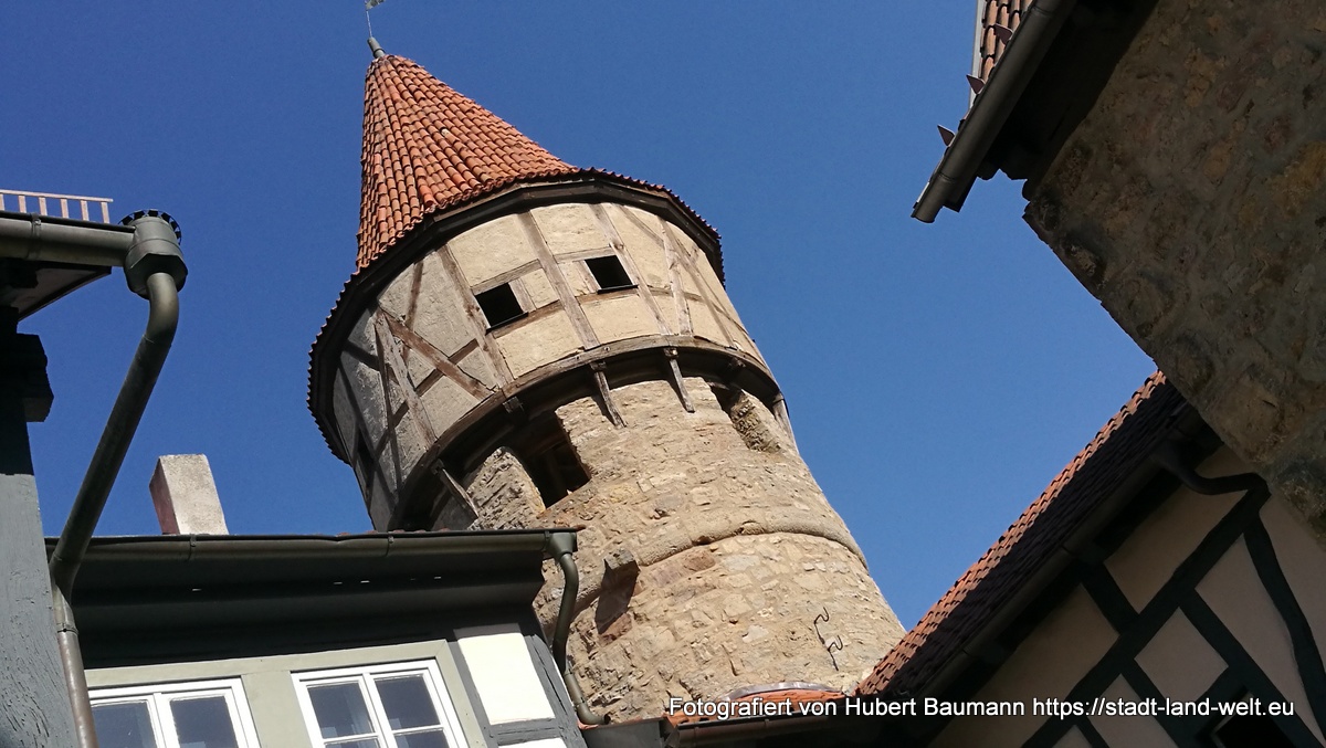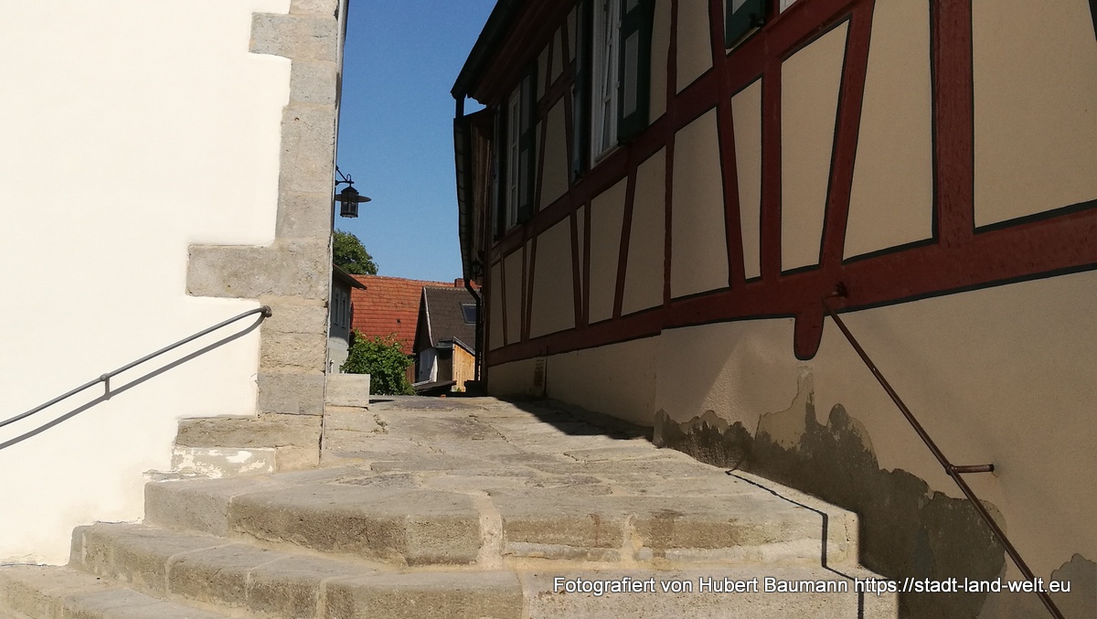 Und wer jetzt noch nicht weiß: Wir befinden uns gerade in dem Städtchen Ostheim vor der Rhön, dessen Entdeckung wir letztlich unserem defekten Rücklicht und den daraus entstandenen Gesprächen zu verdanken hatten.