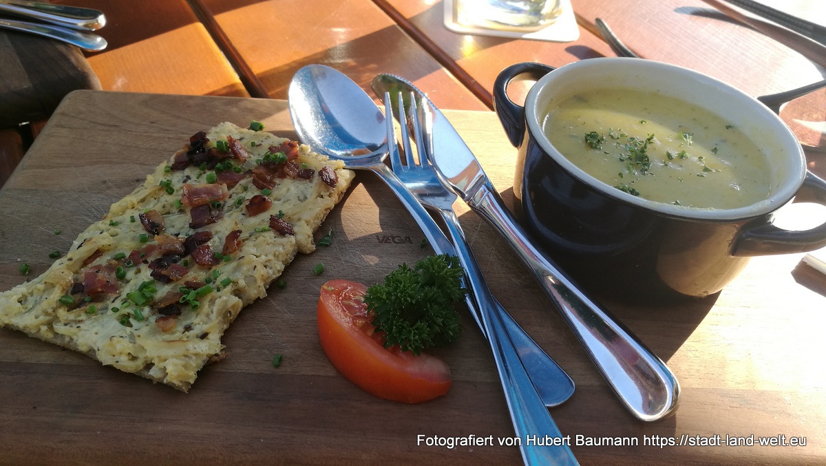 Bei diesem Angebot ist es nicht verwunderlich, dass der 36-jährige Wirt Kai Petersen im Jahr 2014 den Gastronomie-Gründerpreis gewann. Meiner Frage, ob ich ihn denn in meinem Blog erwähnen dürfte, stimmte er zu. „Wenn es positiv ist natürlich …“ fügte er mit einem Lächeln hinzu. „Das weiß ich jetzt noch nicht“ antwortete ich, denn zu diesem Zeitpunkt hatten wir ja gerade erst bestellt. Doch es wurde positiv und der fränkische Zwiebelkuchen wie auch das Rehgulasch waren lecker.