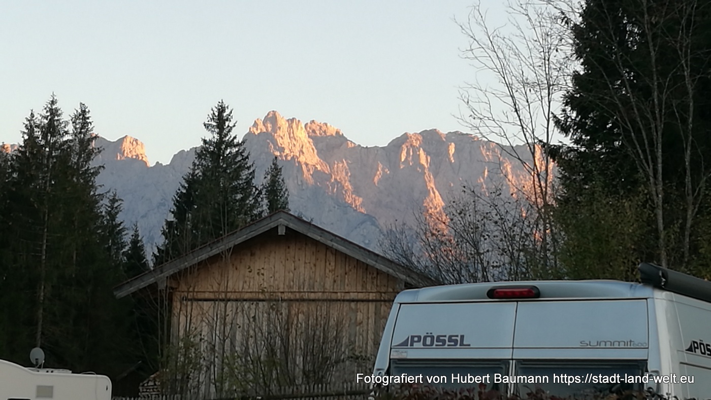 Eigentlich hätte das wunscherschöne Herbstwetter wie auch unser super Stellplatz am Alpencamping Tennsee noch zum Bleiben eingeladen. Allerdings verhieß uns der Wetterbericht für den kommenden Tag nichts Gutes.