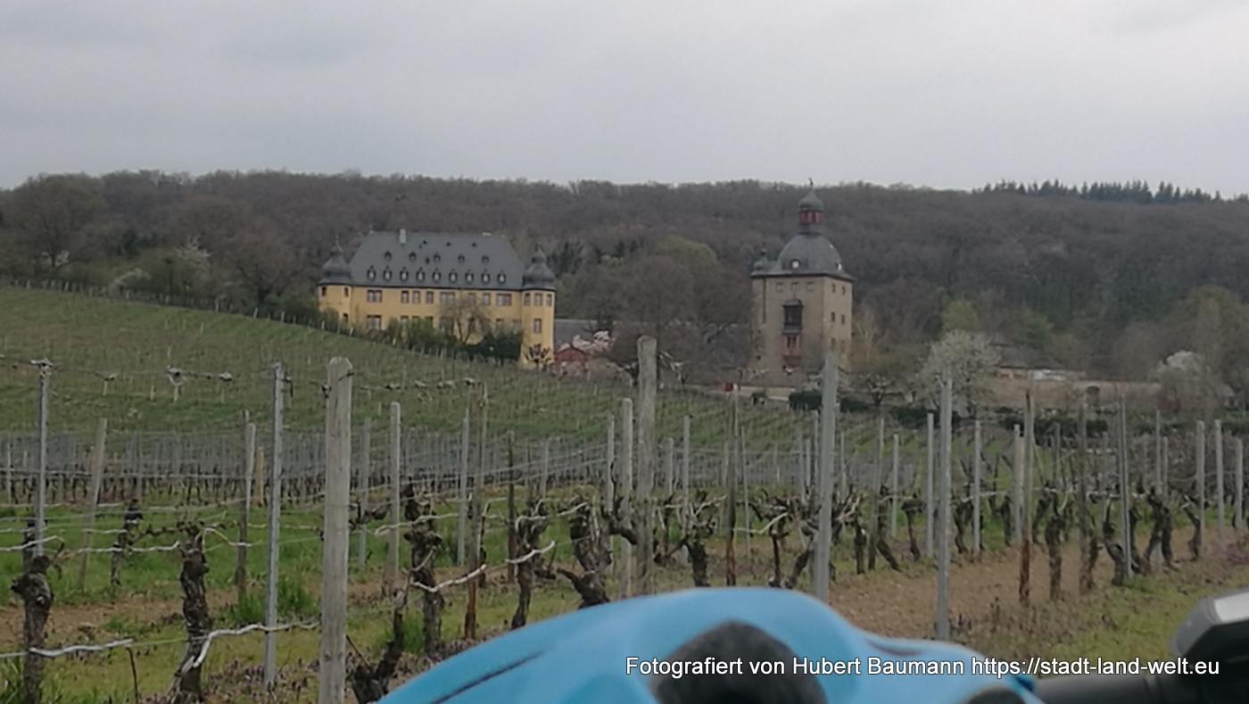 Für die abendliche Besprechung war ich eigens aus Aschaffenburg angereist und hatte mich mit meinem Summit 600 auf dem kleinen Wohnmobil-Parkplatz in Oestrich-Winkel an der Feuerwache einquartiert. Die drei Kilometer zu unserer Besprechung in der Buchhandlung Idstein wollte ich mit meinem Fahrrad zurücklegen – mit einem kleinen Umweg über die Weinberge und das Schloss Vollrads. Nach etwa 45 Minuten war ich dann jedoch bis auf die Knochen durchnässt zurück in meiner Unterkunft und musste mich erstmal trockenlegen.