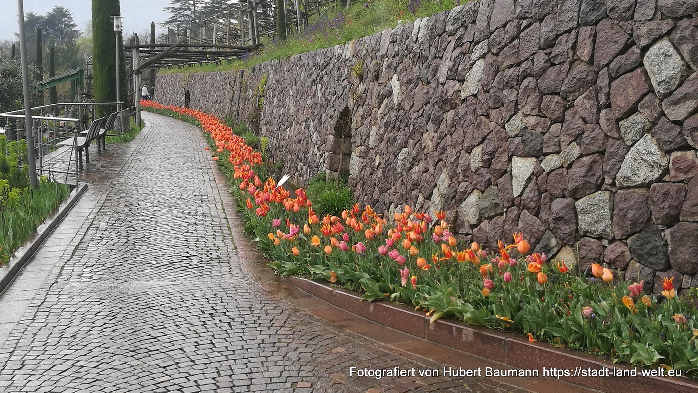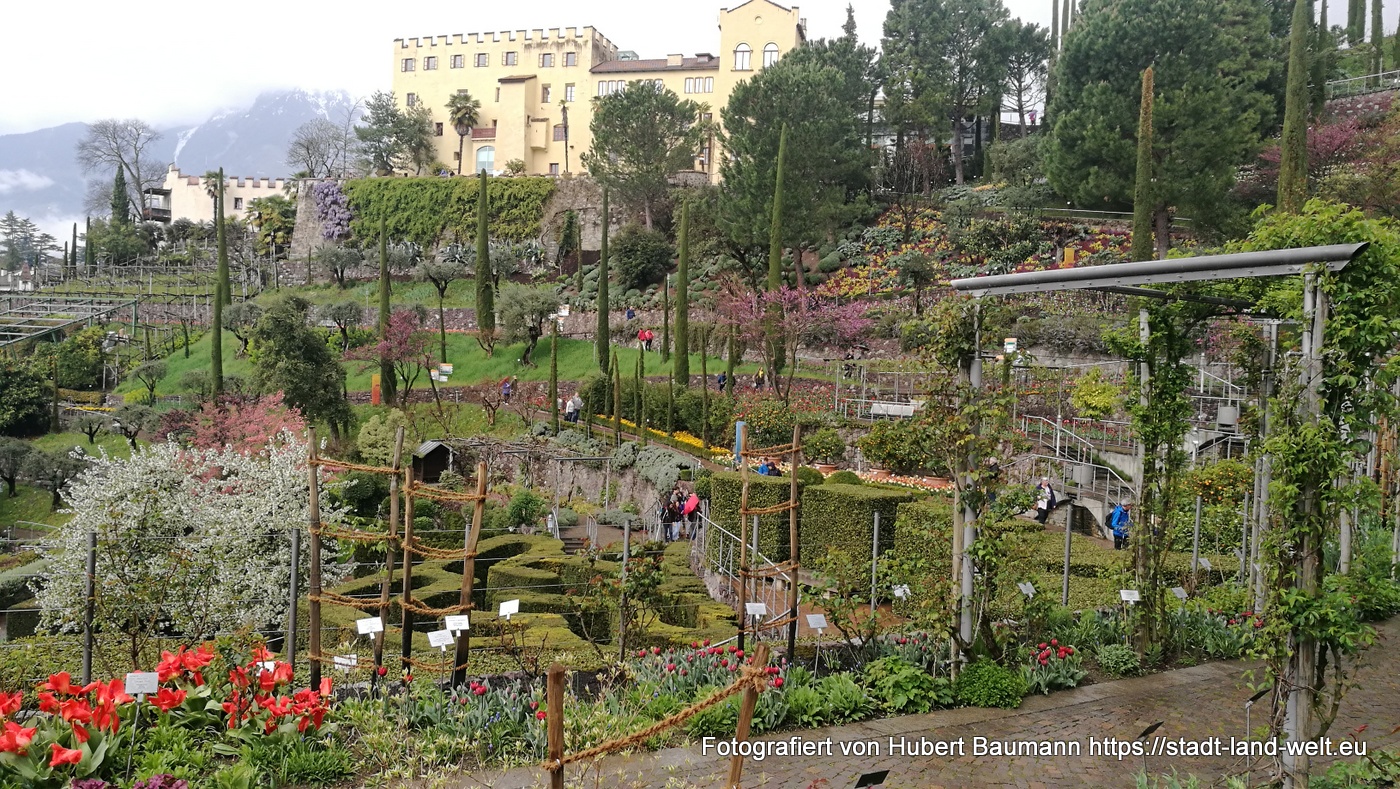 Wer die Gärten von Schloss Trautmannsdorf noch nicht kennt, sollte sie unbedingt bei einem Meran-Besuch mit einplanen. Bei unserem Besuch waren viele Blüten leider noch nicht voll entfaltet. Ich denke, es dauert noch 2 – 3 Tage, aber da wollen wir ja schon weiter sein. Ansonsten lasse ich jetzt einfach mal die Bilder für sich sprechen.