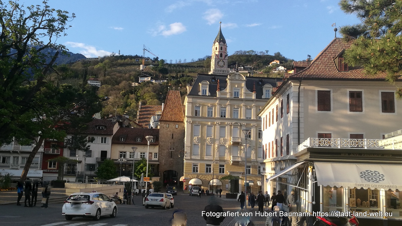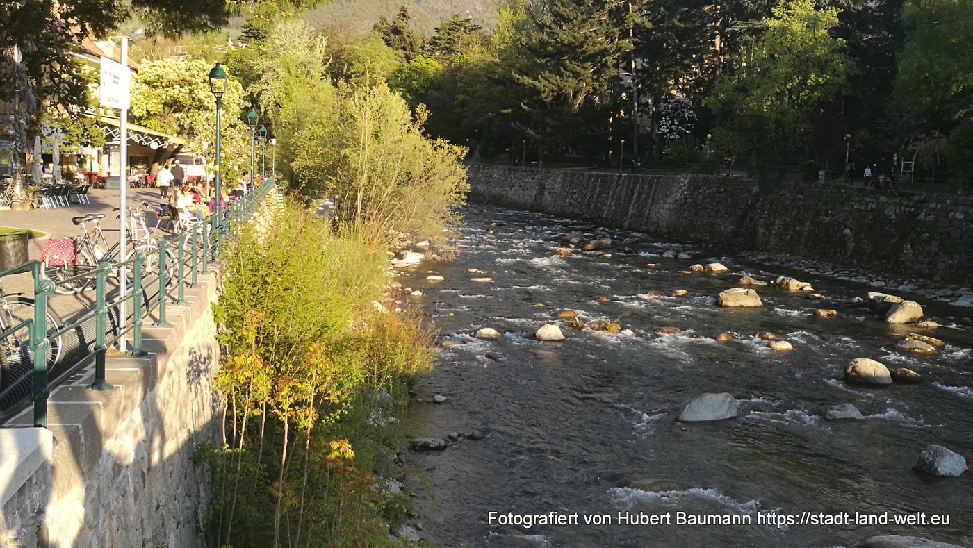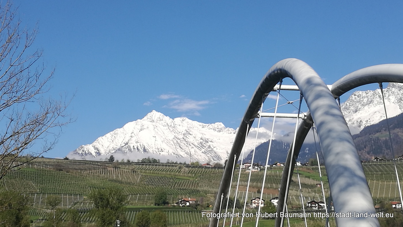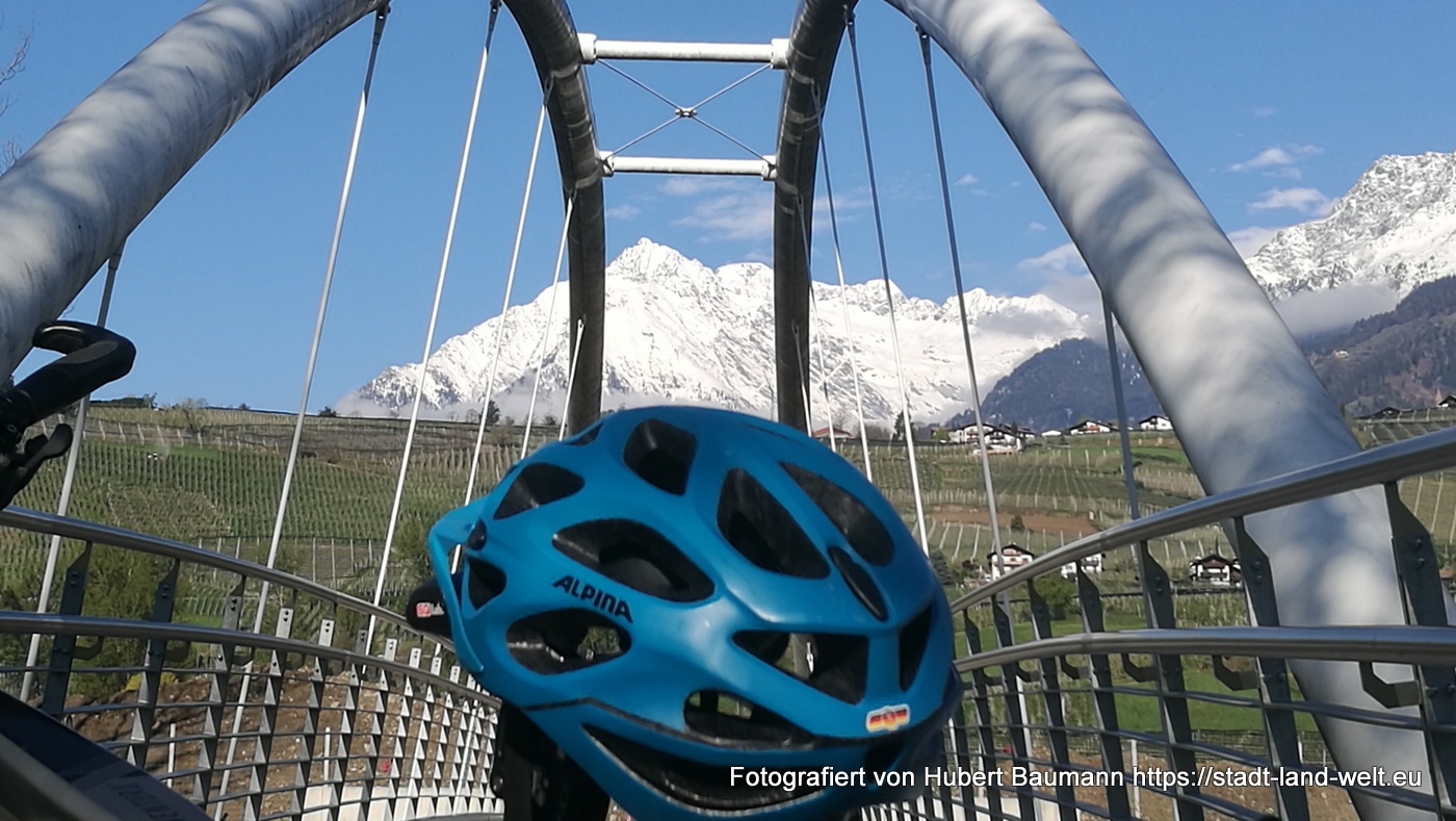 Mit dem E-Bike war die Steigung bis St. Leonhard kein Problem. Wir bemerkten erst auf der Rückfahrt, welche Höhendifferenz wir auf der Hinfahrt überwunden hatten. Einfach rollen lassen und hin und wieder mal treten. Huiiiii – im Handumdrehen waren wir wieder zurück in Meran.
