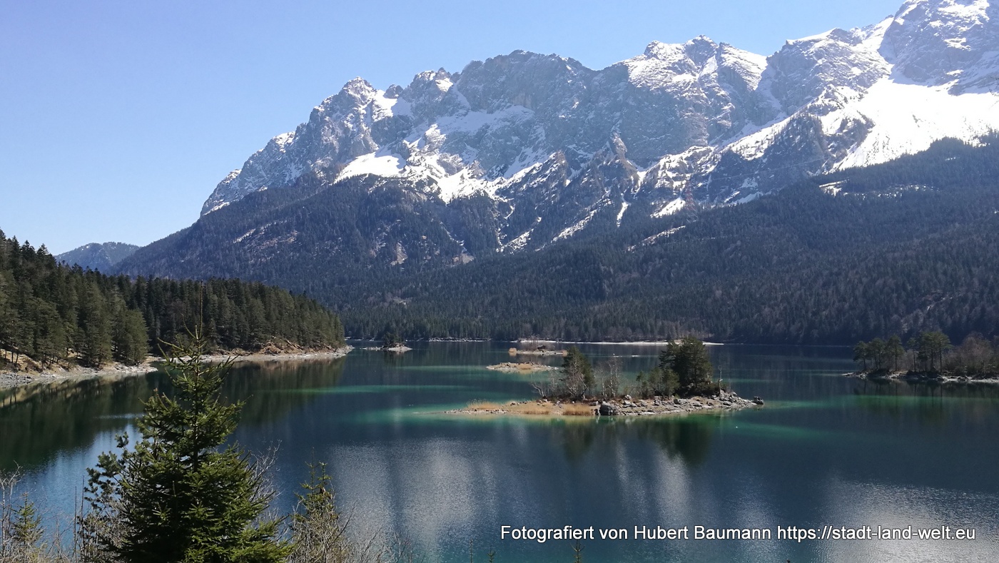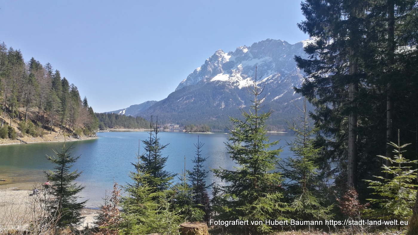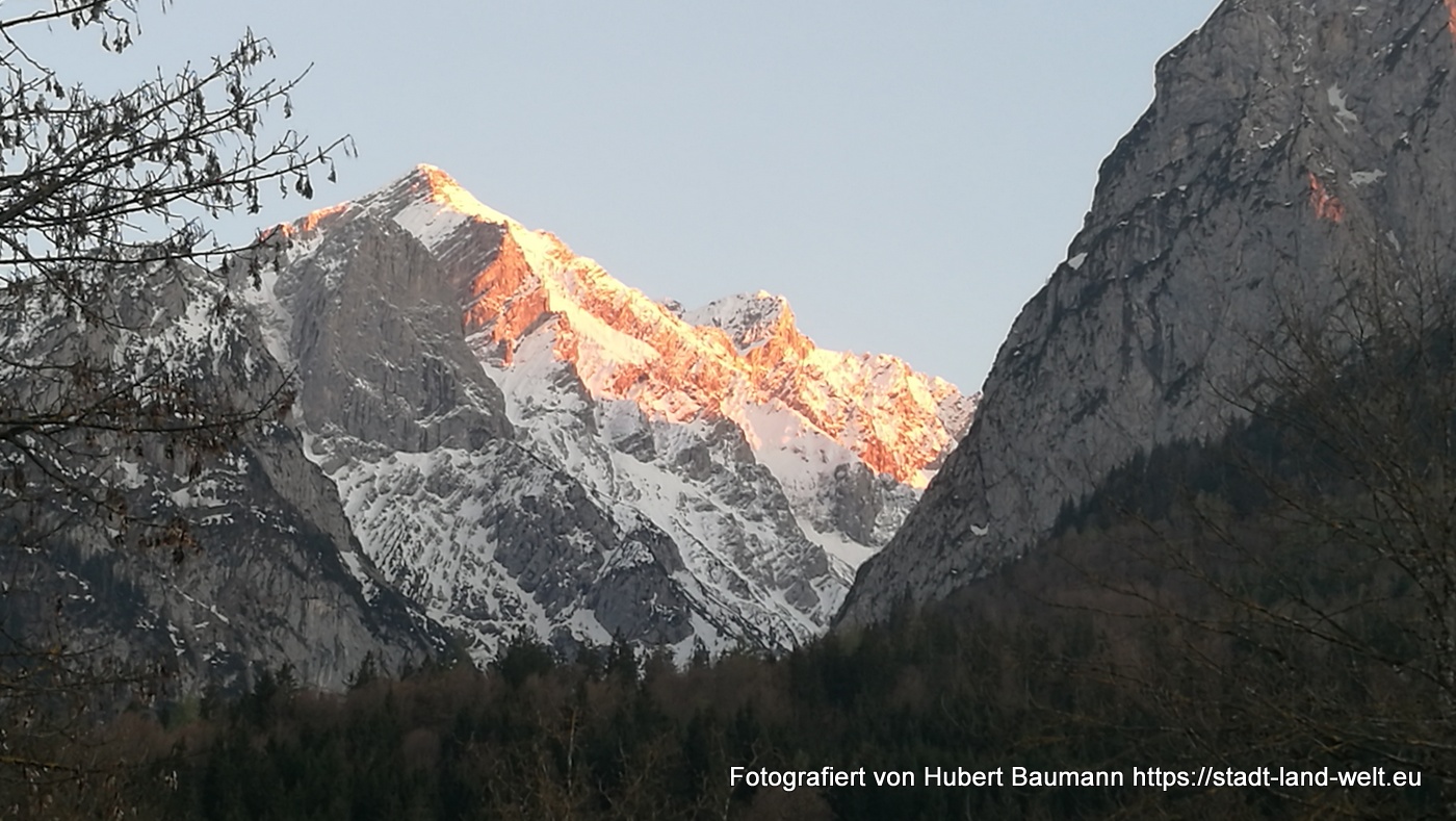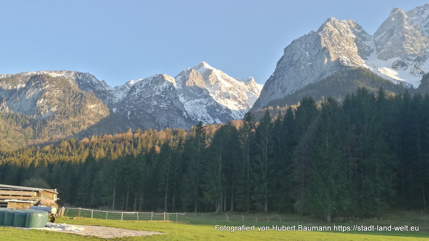 Freitag (Karfreitag): Die Sonne weckte uns an diesem Tag schon gegen 6:30 Uhr durch die Ritzen des verschlossenen Dachfensters. Hätten alle anderen Tage, die wir bisher unterwegs waren, nicht genau so beginnen können? Ein Blick durchs Heckfenster eröffnete uns einen grandiosen Blick auf das Zugspitzmassiv, den höchsten Berg Deutschlands.