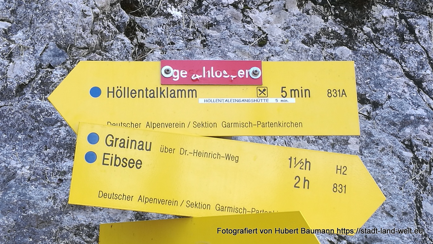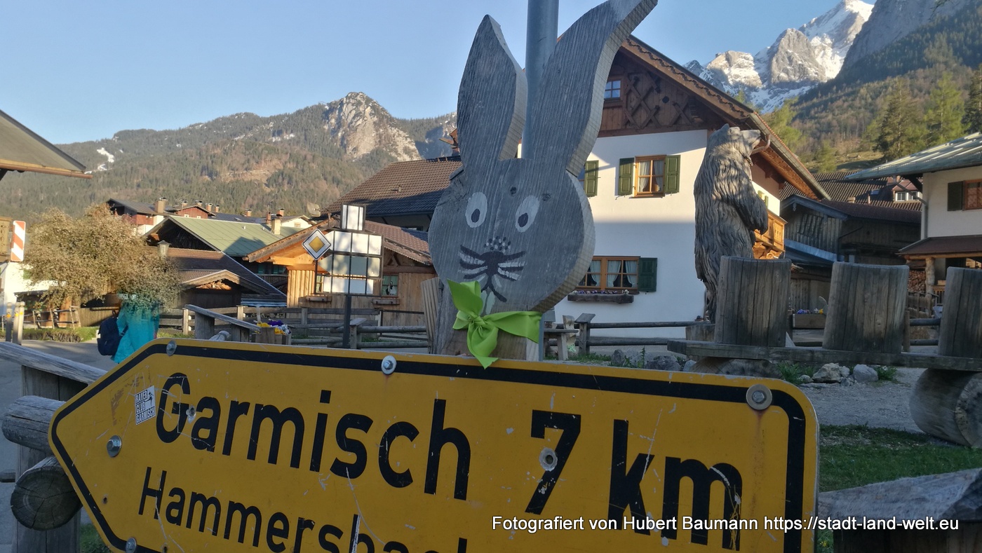 Unsere Tagestouren führten uns zunächst zu Fuß bis zum Klammeingang der Höllentalklamm. Weiter ging es leider nicht, da die Klamm witterungsbedingt noch geschlossen ist. Am Nachmittag war dann eine Radlrunde nach Garmisch mit einem typisch bayerischen Imbiss (Currywurst mit Pommes) und das auch noch am Karsamstag – hihihi – angesagt.