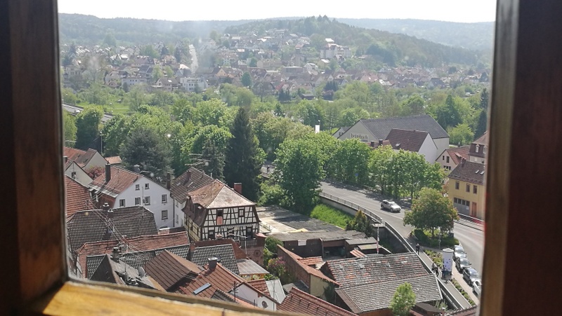 Ein Samstagvormittag-Besuch in der Stadt Lohr führte uns in das Fischerviertel und auf den nahegelegenen Bayersturm. In 147 Stufen (teils enger Steinwendeltreppe) gelangt man zu der 2-geschossigen Wohnung der ehemaligen Turmwärterfamilie Bayer, von der der Turm heute auch seinen Namen hat. Von dort aus hat man nicht nur einen herrlichen Blick über die Stadt Lohr und die umliegenden Spessartberge, sondern erhält auch einen Einblick in die Wohnung des ehemaligen Turmwärters. Ein Nachteil für die, die dort oben gerne mal eine Nacht verbringen möchten: Die Toilette befindet sich im Turm gaaaanz unten. :-(