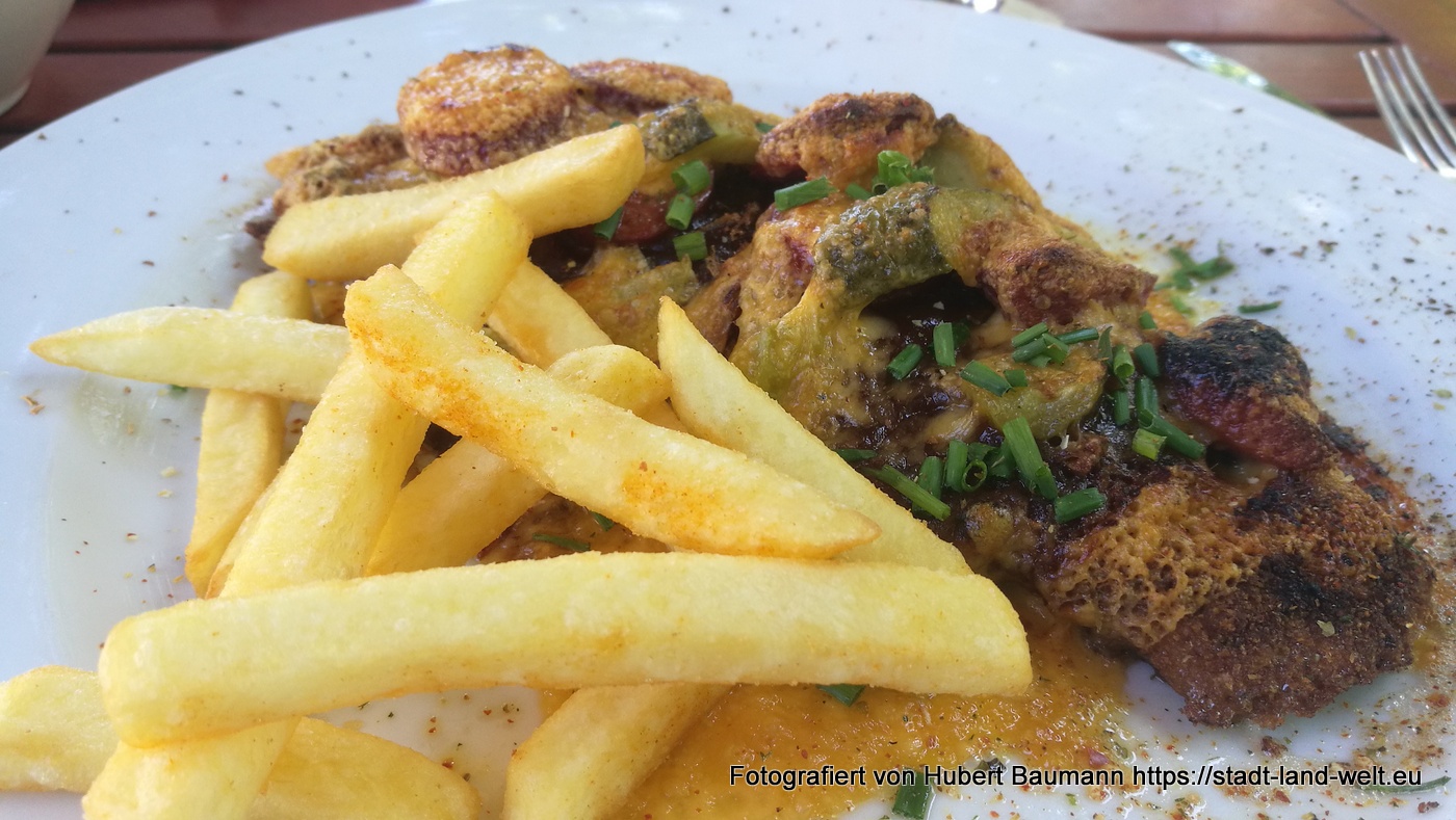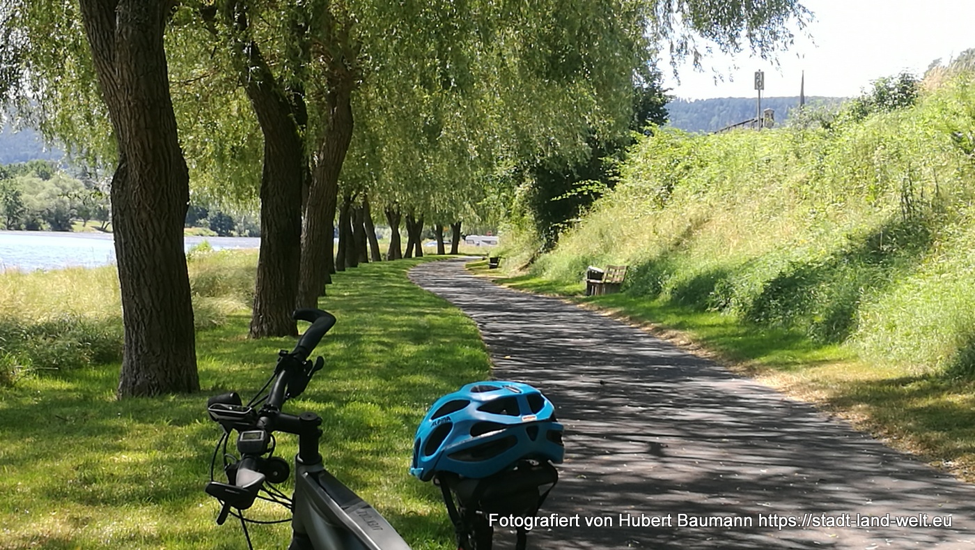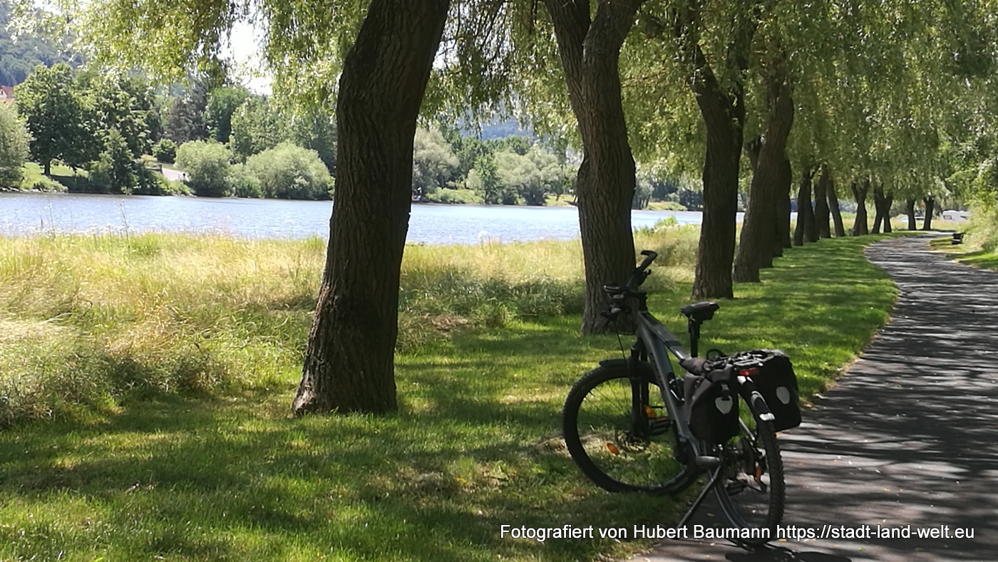 Seit meiner Mittagspause hatte sich meine Reisegeschwindigkeit deutlich verlangsamt. Das könnte an dem hopfenhaltigen Kaltgetränk gelegen haben, an dem üppigen Essen, oder einfach nur daran, dass ich ab Wertheim versuchte, Akku-Energie zu sparen und versuchte, ebene Abschnitte ohne Elektro-Unterstützung zu bewältigen. Ich hatte ja ab Aschaffenburg nach Haibach noch einen Berg zu bewältigen.