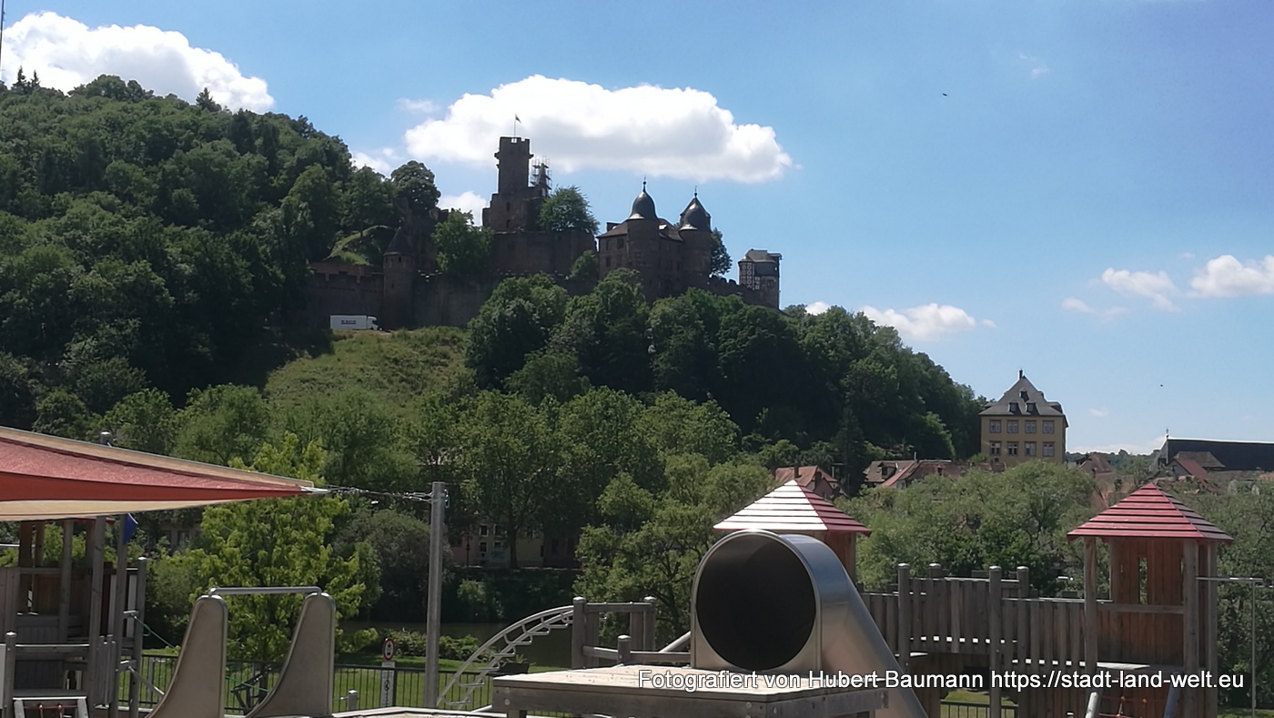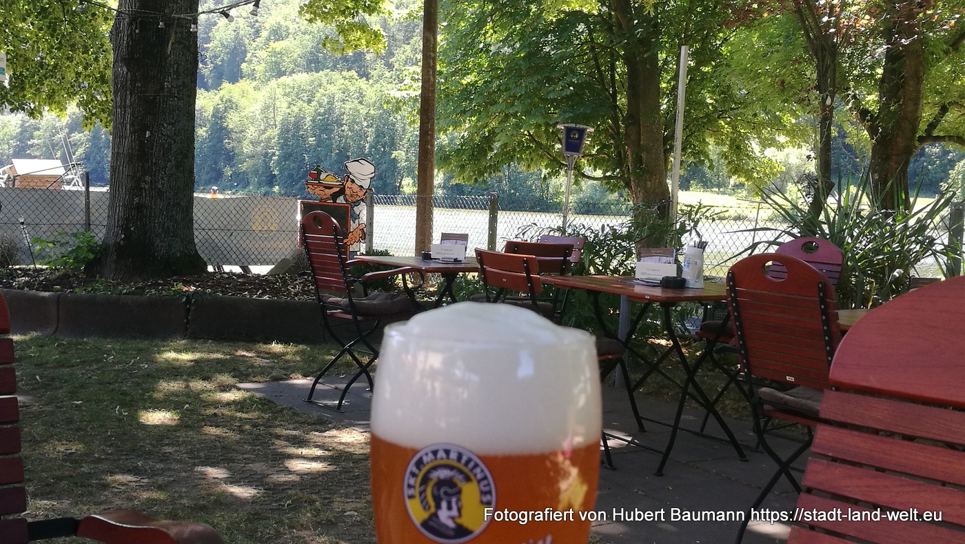 Weiter geht’s nun über nach Marktheidenfeld über die Bayerisch – Baden Württembergische Landesgrenze nach Wertheim. Weitgehend eben dem Main-Radweg folgend. Zum Mittagessen gegen 13:30 Uhr war dann allerdings schon wieder zurück in Bayern, und zwar in Dorfprozelten im Landkreis Miltenberg.