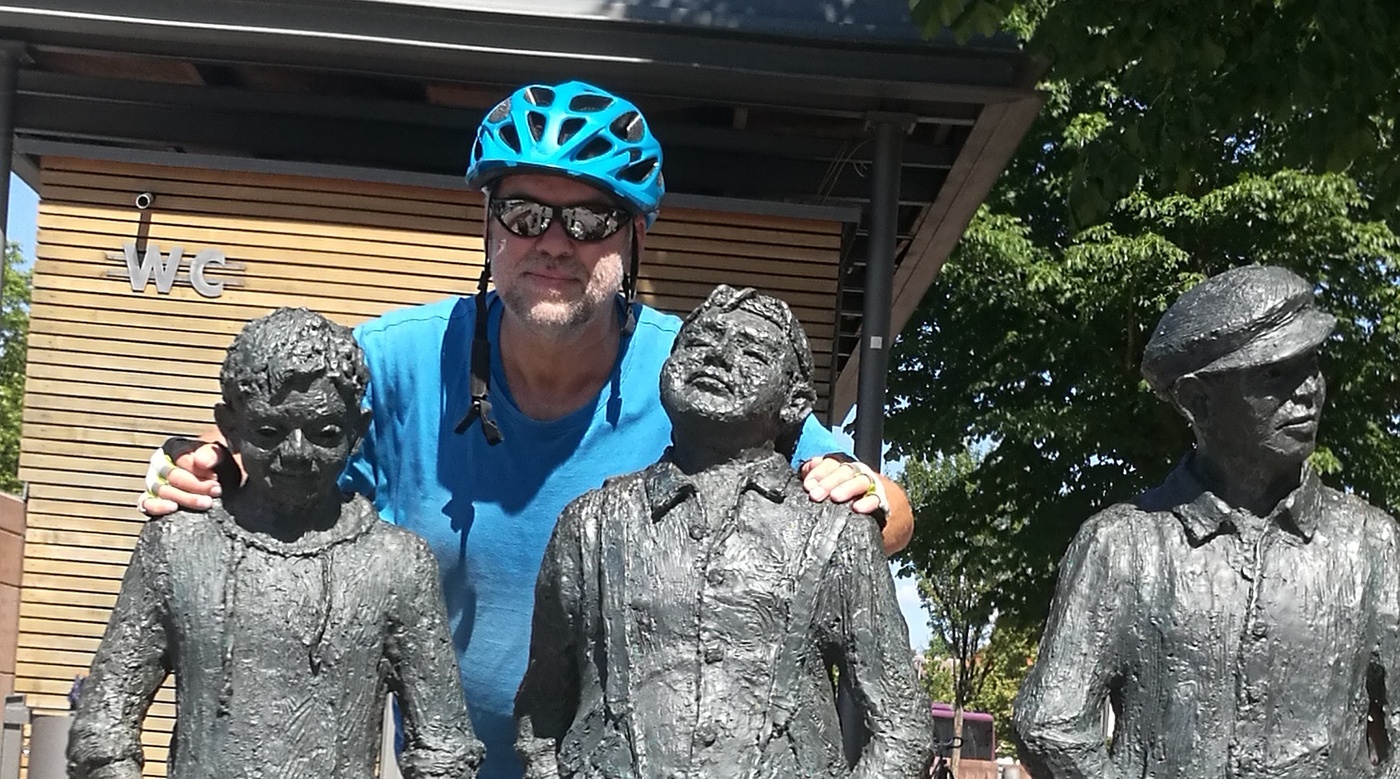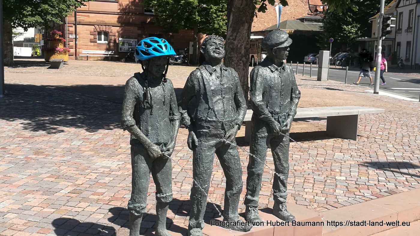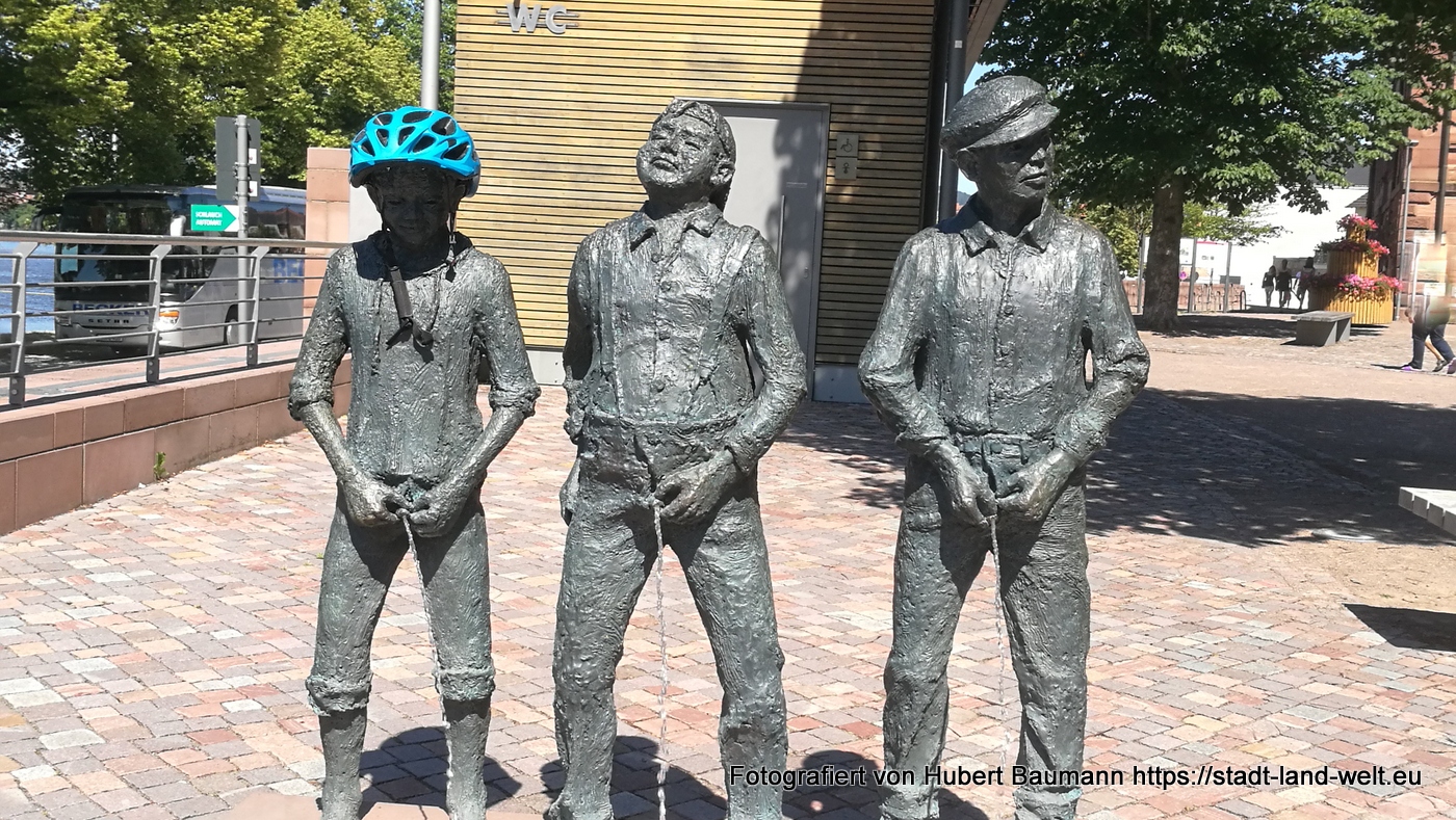 Aufgemuntert wurde ich von drei Lausbuben in Miltenberg, die am hellichten Tag ungeniert …. naja, schaut einfach selbst ….. Einer der drei muss wohl auch mit dem Fahrrad unterwegs gewesen zu sein. Er hatte den gleichen Helm wie ich. Was für ein Zufall. Das Angebot einer Spaziergängerin für ein Gruppenbild nahm ich natürlich gerne an. Allerdings nur unter der Voraussetzung, dass ich dafür nicht die gleiche Stellung einnehmen musste wie die drei Buben. :-)