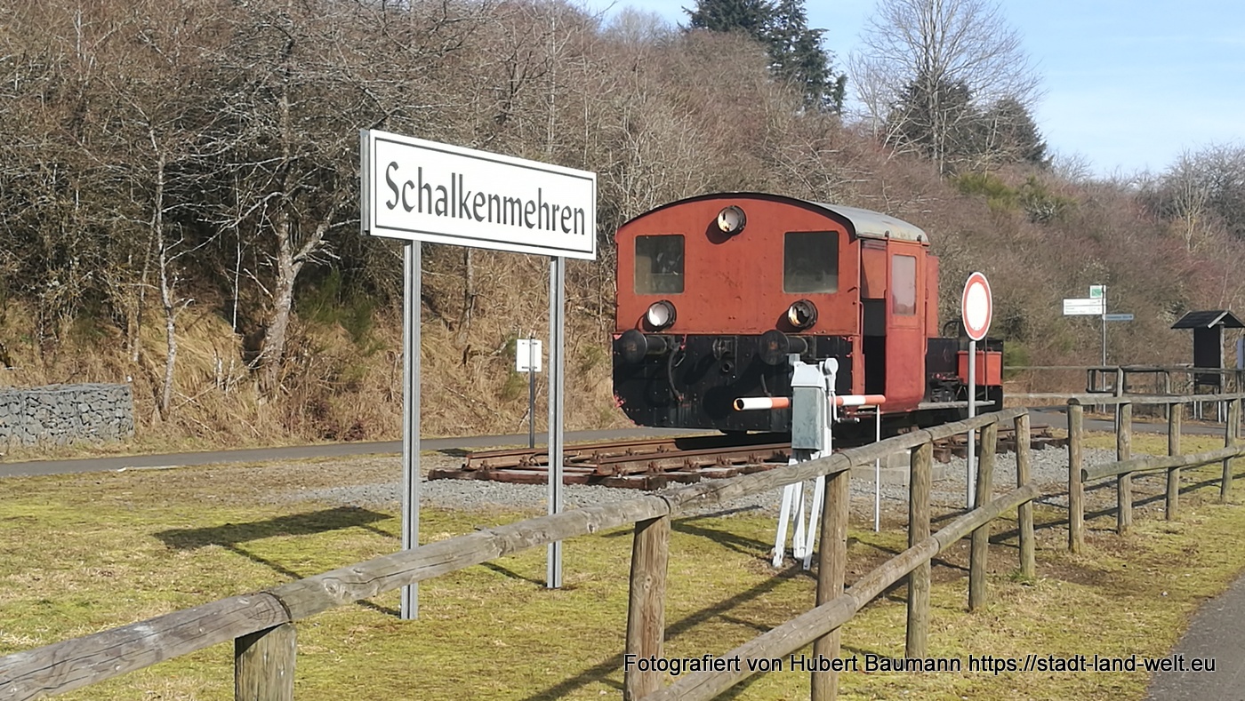 Ab Gillenfeld führt der Maare-Mosel-Radweg auf einer alten Bahntrasse, und verwandelt sich ab Schalkenmehren in ein kleines „Freilichtmuseum“. Der alte Bahnhof in Schalkenmehren präsentiert eine alte Lok und im weiteren Verlauf sind die Verkehrsschilder der Lokführer mit Hinweisschildern erklärt. Wer weiß schon, was diese ganzen merkwürdigen Zeichen am Rande der Bahngleise zu bedeuten haben?