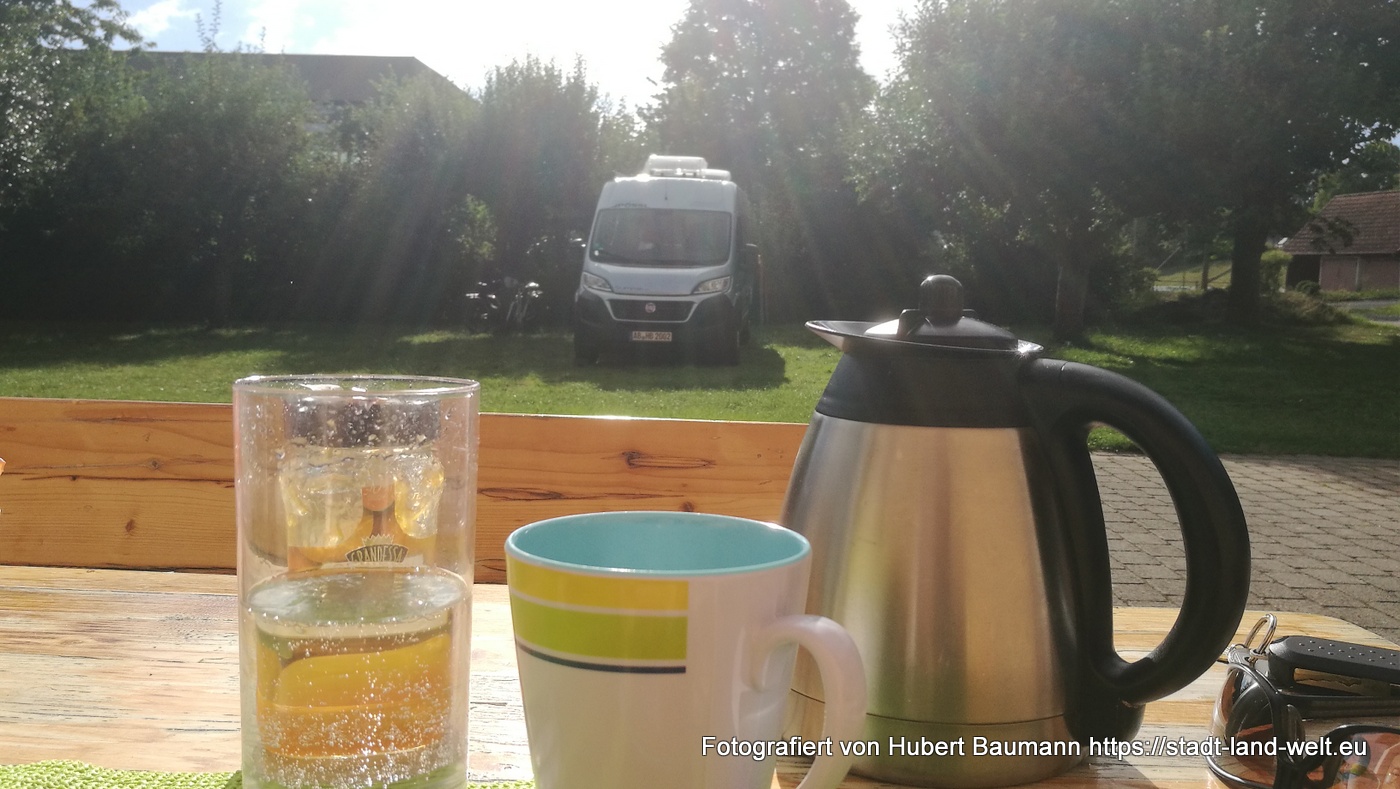 Am Wochenende war der Landvergnügen-Hof der Winzerfamilie Jonas in Eußenheim unser Ziel. Wer nicht bei Landvergnügen ist, wird aber dennoch nicht weggeschickt, sondern darf gegen einen kleinen Obulus von 7,00 EUR pro Nacht dennoch das Landleben genießen. Von Eußenheim aus ging es am Nachmittag an der Wern entlang bis Wernfeld, wo die Wern in den Main mündet, und dann den Main aufwärts den Main-Radweg nach Karlstadt. Den Rückweg nahmen wir auf dem direkten Weg über die Berge (dem Erfinder des E-Bike sei Dank).