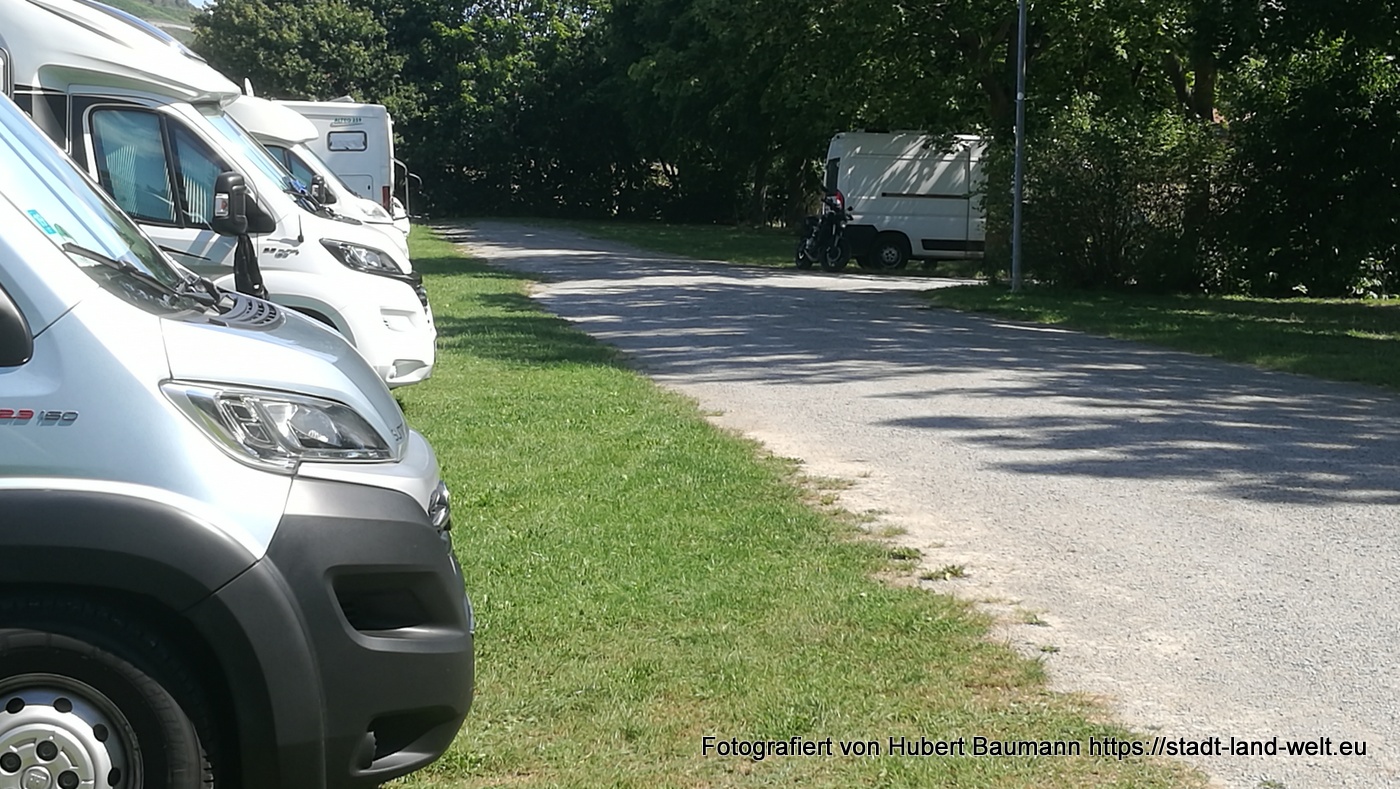 Kostenloser Stellplatz in Thüngersfeld für ca. 15 – 20 Mobile direkt am Main hinter dem Freibad und mit direktem Blick auf die Weinberge. Strom und V+E vorhanden. Bäcker im Dorf (ca. 1 km). Wer für Freibad nebenan eine Tageskarte für EUR 2,50 löst, kann dort den ganzen Tag beliebig oft zum Schwimmen, Duschen oder die Toilette nutzen.
