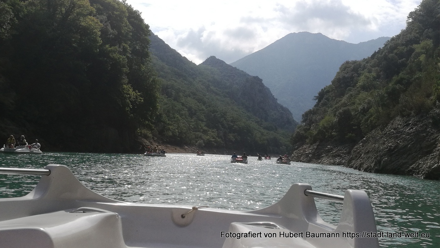 Die Mindestmietzeit für ein Boot beträgt eine Stunde. In dieser Stunde kann man ein gutes Stück in die Schlucht hineinstrampeln und sich dann gemütlich und nur mit geringer Muskelunterstützung zurücktreiben lassen. Die imposantesten Eindrücke und Felsformationen hat man eh schon relativ am Schluchteingang und in die ersten paar hundert Metern danach.