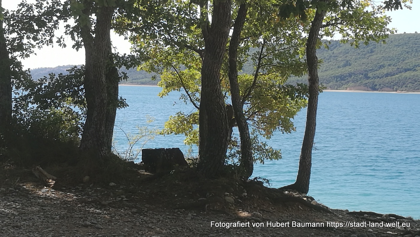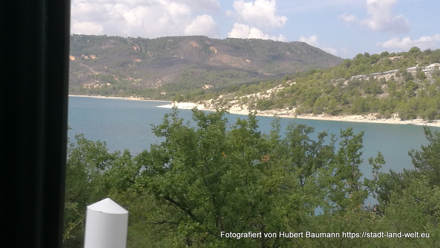 …. bevor es weitergeht am Lac de Saint Croix entlang, die Staumauer am Südende überquerend zu dem eigentlichen Ort Saint Croix und dann weiter in Richtung Westen …. zu neuen Zielen. Wohin? Das wissen wir zu diesem Zeitpunkt noch nicht, da wir das Wetter aktuell nicht einschätzen können. Auf jeden Fall in Richtung Apt, ins Luberon-Gebirge oder vielleicht auch direkt nach Avignon.