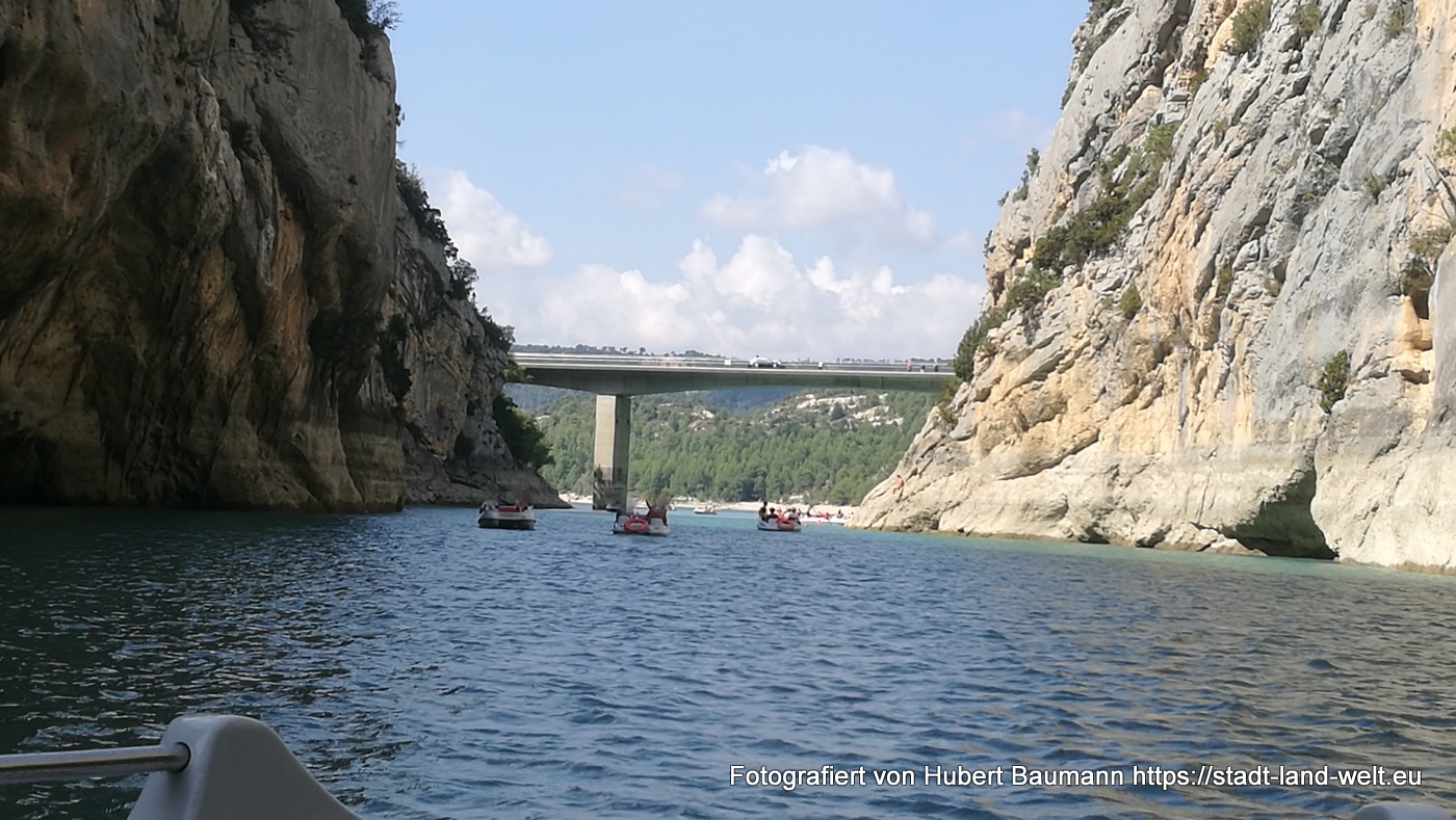 Allerdings mit einem geplanten Zwischenstopp: Auf etwa halber Strecke überquert die Straße über eine Brücke den Verdon und erlaubt von dort nochmals einen atemberaubenden Blick in die Verdon-Schlucht und das smaragdgrüne Wasser.