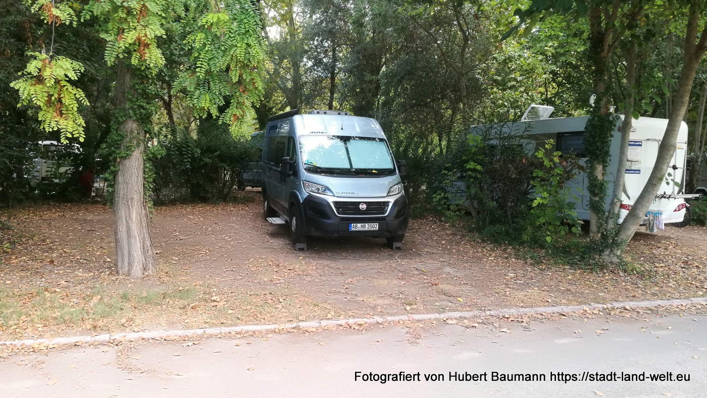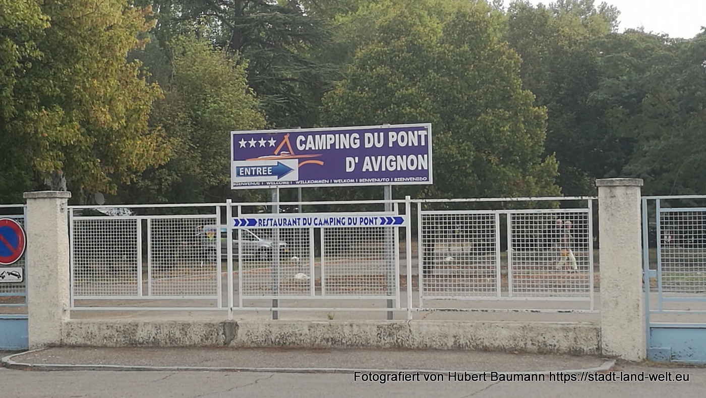 Wir steuern den Campingplatz Du Pont auf der Isle de la Barthelasse an. Ein sehr großer Platz mit geräumigen Parzellen und für eine Stadt wie Avignon mit seinen rund 17,00 EUR pro Nacht recht kostengünstig. In unmittelbarer Nähe gibt es auch einen einfach Stellplatz (ich glaube um die 12 EUR pro Nacht), jedoch deutlich weniger komfortabel und direkt an der Straße.