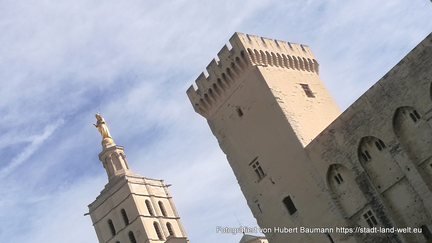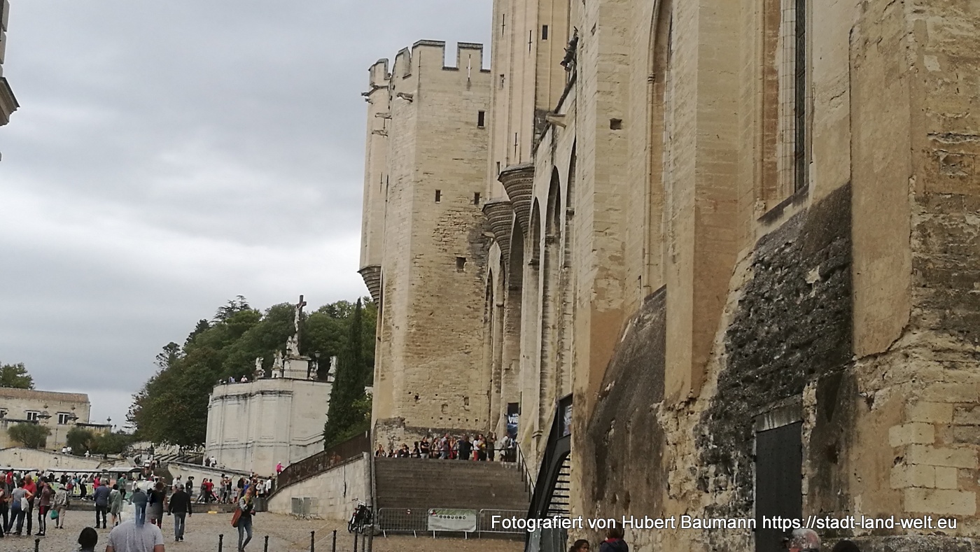 Den Papstpalast, in einigen Reiseführern als groß, jedoch als weniger schön beschrieben, finden wir von außen durchaus beeindruckend. Ebenso ein Abstecher auf den Hügel, von dem aus man ein herrliches Panorama auf Stadt, Umland und die Berge genießt.