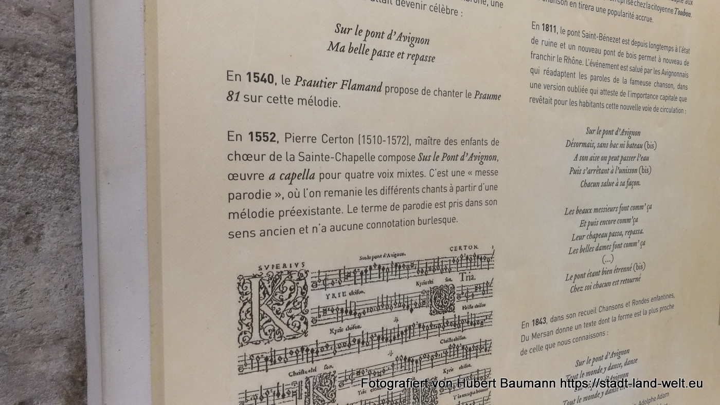 Getanzt und gesungen wurde auf der Brücke von Avignon an diesem Sonntag jedoch nicht. War es das Regenwetter? Oder der Besucherandrang an diesem Sonntag? Viele staatliche Museen sind am 1. Sonntag eines jeden Monats für Besucher kostenlos. Darunter aus die Brücke sowie der Papstpalast und das Rathaus.